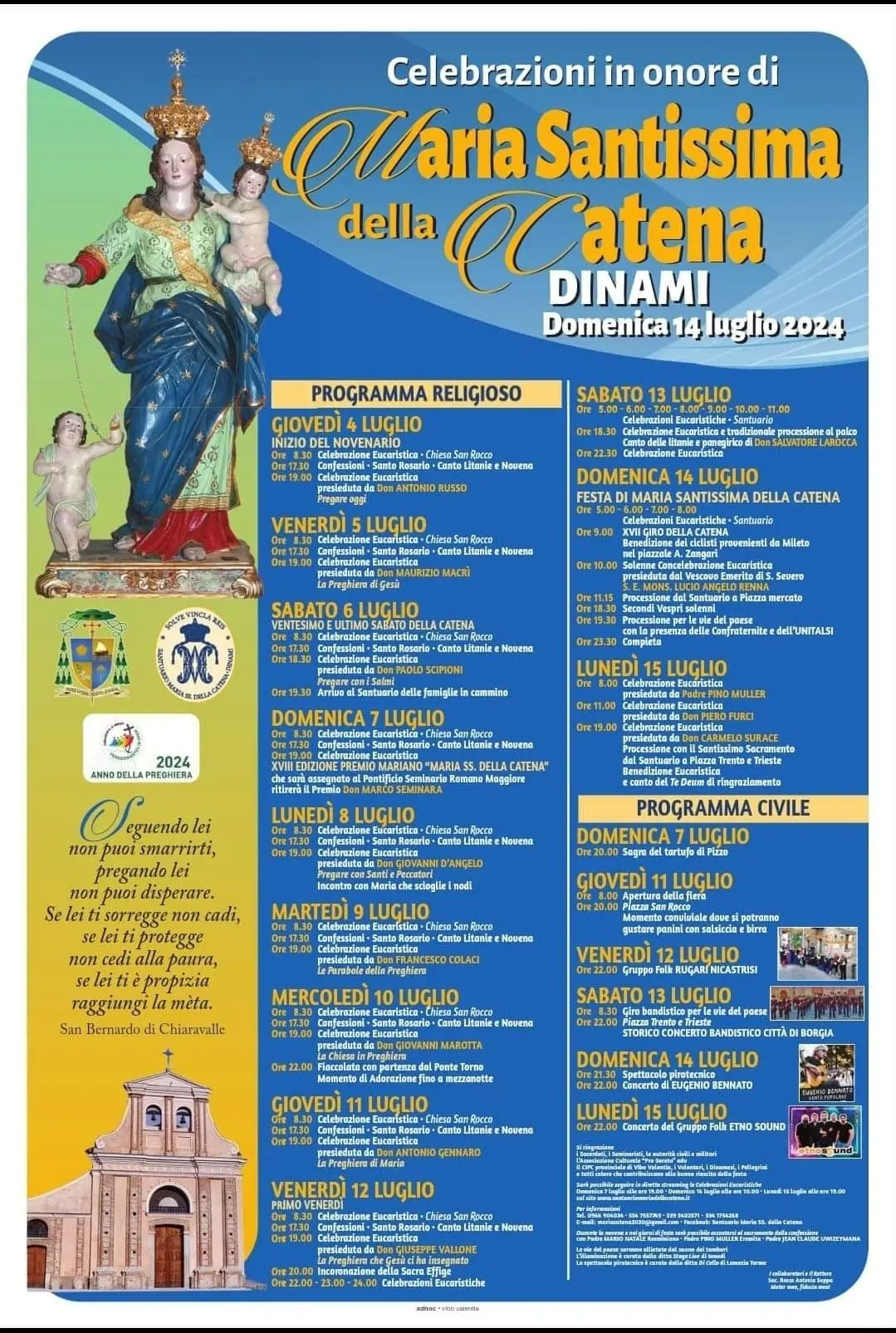 Per il primo cittadino, un appuntamento da non perdere: «Ci auguriamo che il nostro invito venga recepito, che l’iniziativa susciti l’interesse del pubblico. Anche per dare un segnale di speranza ai giovani che credono ancora nelle potenzialità della nostra terra e alle famiglie che scelgono di restare nel proprio paese d’origine». Dinami, nel frattempo, si appresta a vivere momenti di fede e di preghiera in occasione dei festeggiamenti legati alla Madonna della catena (14 luglio). La sacra effigie continua a chiamare a raccolta pellegrini da ogni angolo della provincia e non solo. Molti di questi, in segno di devozione e per voto, raggiungono ancora oggi a piedi l’antico santuario dedicato alla Vergine.