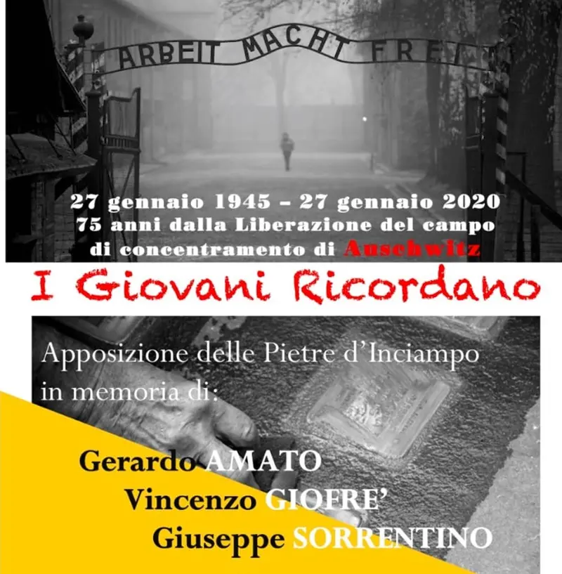 Cerimonia di inaugurazione delle Pietre d’Inciampo in memoria di Gerardo Amato, Vincenzo Giofrè, Giuseppe Sorrentino, oggi alle ore 11 all’istituto di istruzione superiore “L.Einaudi” di Serra San Bruno. Un’iniziativa importante in occasione dei 75 anni dalla Liberazione del campo di concentramento di Auschwitz, luogo simbolo della Shoah (sterminio del popolo ebraico), delle leggi razziali e della persecuzione gli ebrei. [Continua dopo la pubblicità]