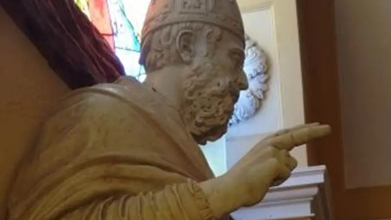 Caricata su un resistente carro buoi appositamente costruito e adagiata su uno strato di fieno, il 5 dicembre la scultura marmorea iniziò il suo viaggio in compagnia di trecento cacciatori a cavallo e dell’intera popolazione, tra il suono delle campane e il rumore dei petardi. Solo in un secondo momento, ricollocata la testa con la sua mitria dorata e restaurata ad un piede e ad una mano, essa fu sistemata all’interno della chiesa madre della diocesi.