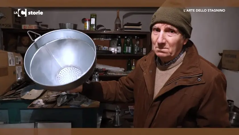 Rocco Lico, ormai l’ultimo stagnino di Pizzo, realizza vari oggetti di uso quotidiano in lamiera zincata: dalle oliere ai candelieri, dai misurini per pasta e farina agli imbuti fino alle grondaie.