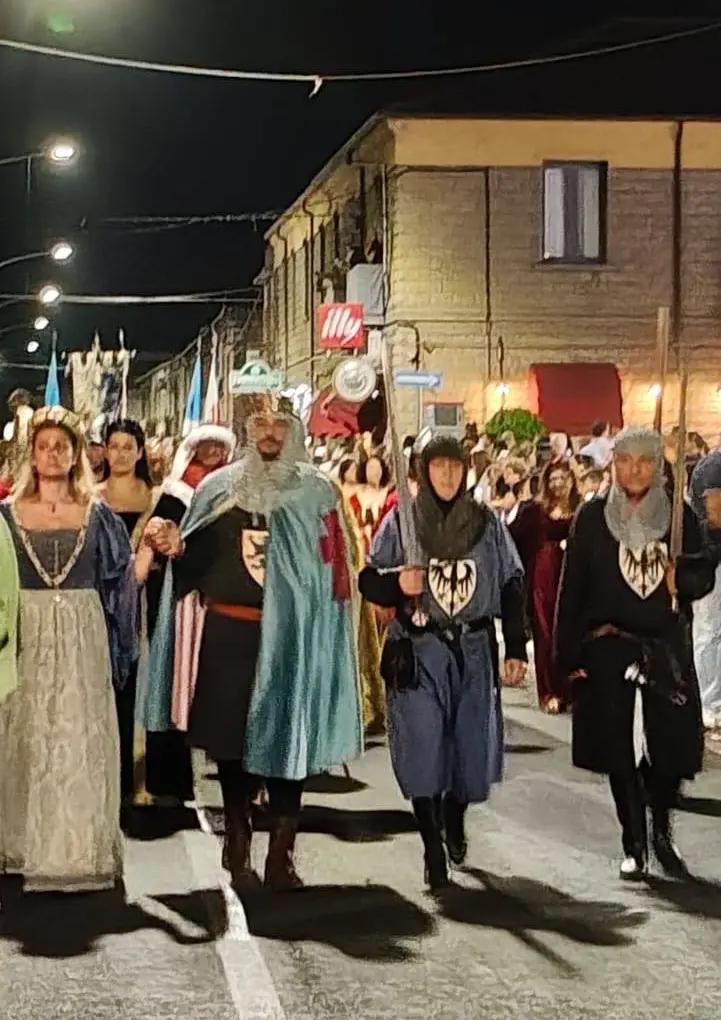 Del corteo storico hanno fatto parte, tra gli altri, i Cavalieri Città Regia e i Trombonieri Sant’Anna di Cava dei Tirreni, gli Sbandieratori e i Musici Rioni Maestri di Motta Sant’Anastasia, i gruppi di Mileto, Sinafe Medieval Vagantes e Fretensis di Armigeri, delegazioni dei gruppi di San Giorgio Morgeto, Gerace e Catanzaro. Tra i momenti cardine, la giostra a cavallo e il saluto della corte al corpo di San Fortunato Martire, sul sagrato della basilica cattedrale, chiesa madre della diocesi di Mileto-Nicotera-Tropea.