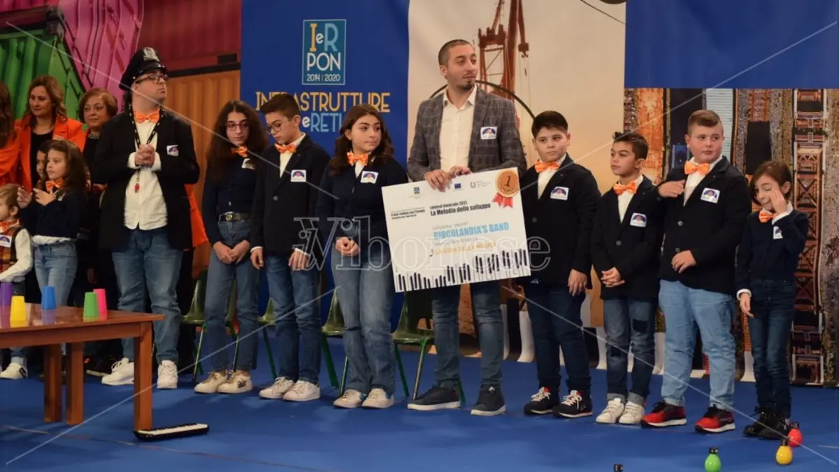 Si è tenuta questa mattina a Nicotera la cerimonia di premiazione dei vincitori del concorso musicale “La melodia dello sviluppo”, promosso dal ministero delle Infrastrutture e organizzato in particolare dal PON Infrastrutture e Reti 2014/2020 nell’ambito dell’Azione di sensibilizzazione “Il Sud #InRete con l’Europa: racconta con i tuoi occhi”. Una manifestazione che come previsto si è svolta nella città del vincitore della “sezione gruppi”, ossia la Giocolandia’s band di Nicotera. A spuntarla – tra studenti, appassionati e professionisti – e a conquistare il primo posto sono stati proprio loro: i bambini della band della scuola dell’infanzia “Giocolandia” di Nicotera, mentre per la sezione solisti la vincitrice è risultata essere Enza Puca – di Battipaglia, Salerno. [Continua in basso]