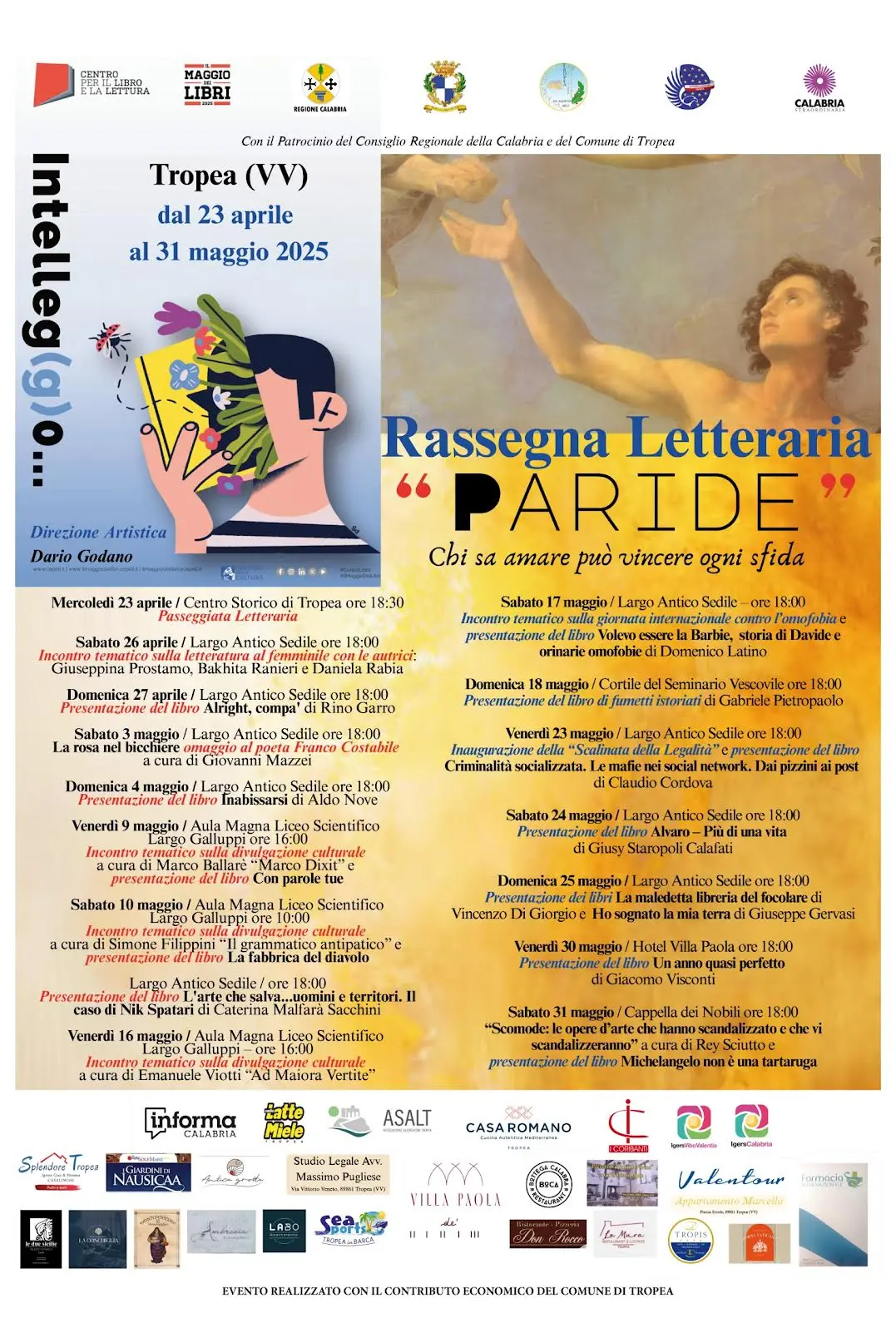 Anche per il 2025, la città di Tropea si prepara ad accogliere la rassegna letteraria in occasione del “Maggio dei Libri”, la campagna nazionale nata nel 2011 per valorizzare il libro e la lettura come strumenti di crescita personale, culturale e civile. Il nome scelto per questa edizione è “Paride”, richiamo mitologico al principe troiano chiamato a compiere una scelta fondamentale tra potere, saggezza e amore. Un simbolo della libertà di scelta che ogni lettore compie seguendo i propri desideri più profondi.
