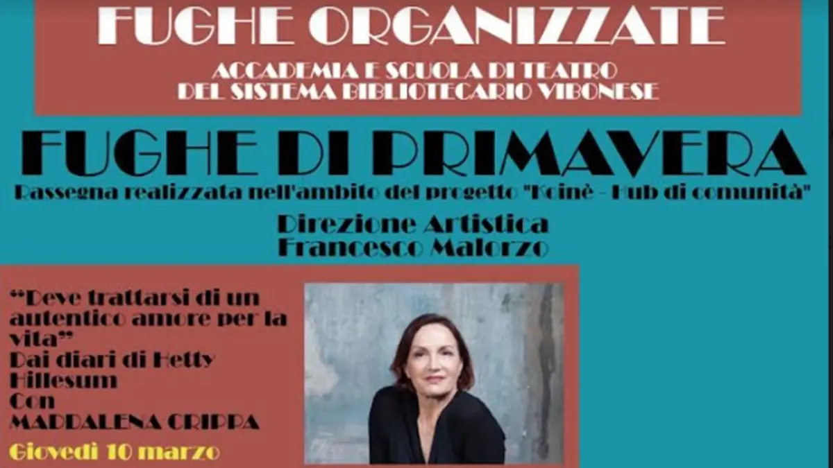 “Torniamo a teatro!”: è questo lo slogan che accompagna il lancio di “Fughe di primavera”, la rassegna teatrale promossa da fughe organizzate – Accademia e Scuola di teatro del Sistema Bibliotecario Vibonese (SBV), con la direzione artistica di Francesco Malorzo, al via il prossimo 10 marzo al Teatro Cinema Moderno di Vibo Valentia.