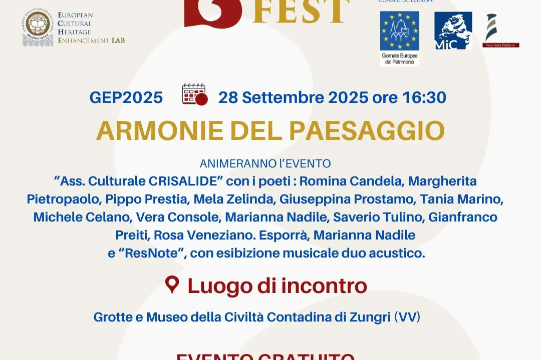 Le grotte di Zungri protagoniste delle Giornate europee del patrimonio. In occasione dell’evento, nato per far apprezzare e conoscere a tutti i cittadini il patrimonio culturale condiviso e incoraggiare la partecipazione attiva per la sua salvaguardia e trasmissione alle nuove generazioni, l’insediamento rupestre ospiterà domenica 28 settembre Armonie del paesaggio. L’appuntamento fa parte dell’itinerario “Paesaggio culturale bizantino” del Mediterraneo, fortemente voluto dall’associazione Byzantine route international association che punta alla valorizzazione dell’eredità bizantina costruendo, in rete con istituzioni e sodalizi attivi nel comprensorio, progetti in grado di assicurare un turismo culturale vitale per la crescita economica e per l’occupazione.