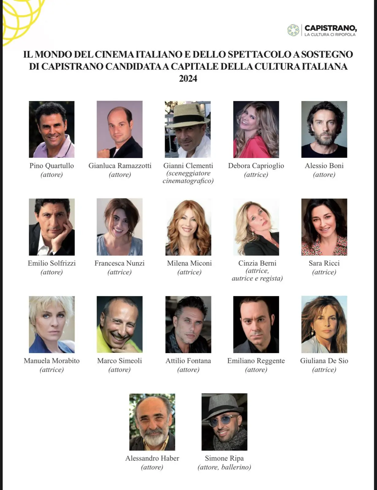Un passo ambizioso quello del piccolo Comune vibonese, con un’iniziativa sostenuta fortemente dall’amministrazione comunale. La candidatura di Capistrano, tra l’altro, vede tra i propri sostenitori noti personaggi provenienti dal mondo del cinema e dello spettacolo. Da Emilio Solfrizzi ad Alessio Boni, da Giuliana De Sio a Debora Caprioglio, fino ad Alessandro Huber. E poi: Pino Quartullo, Gianluca Ramazzotti, Gianni Clementi, Francesca Nunzi, Milena Miconi, Cinzia Berni, Sara Ricci, Manuela Morabito, Francesca Nunzi, Marco Simeoli, Attilio Fontana, Emilio Reggente e Simone Ripa.
