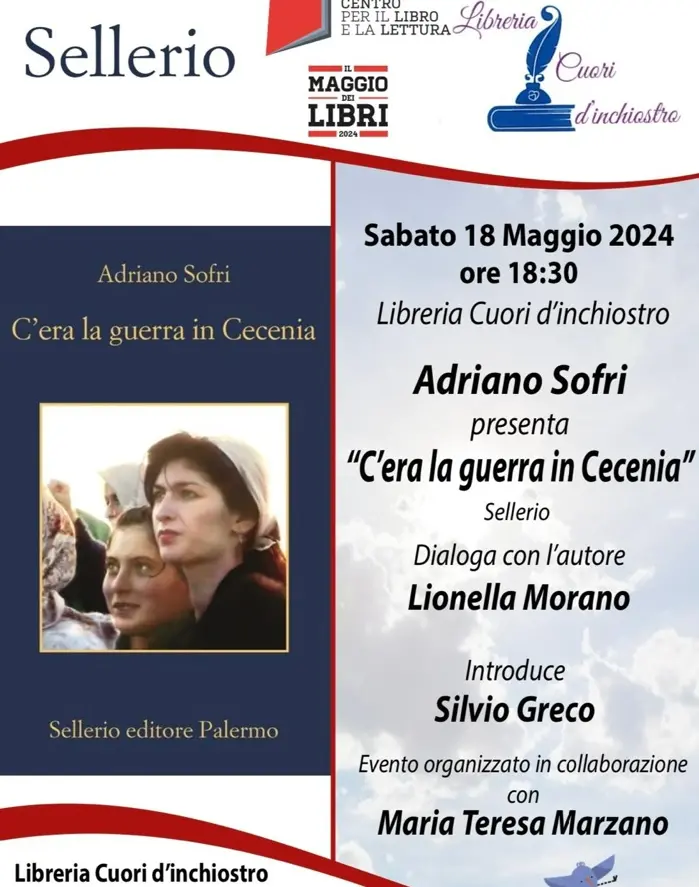 Sabato 18 maggio, alle 18.30, presso la Libreria Cuori d’inchiostro di Vibo Valentia, Adriano Sofri presenterà “C’era la guerra in Cecenia” (Sellerio), in conversazione con Lionella Maria Morano e Silvio Greco che ha reso possibile l’incontro. L’appuntamento, organizzato in collaborazione con Maria Teresa Marzano, fa parte della rassegna Il Maggio dei Libri 2024 e sarà l’occasione per incontrare un testimone privilegiato di momenti storici come Adriano Sofri.