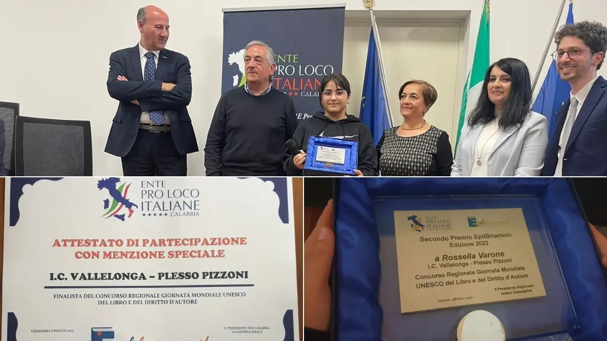La cerimonia di premiazione si è tenuta nella sala verde della Cittadella regionale di Catanzaro. Presenti Eleonora Rombolà, dirigente scolastico dell’Istituto comprensivo di Vallelonga – plesso di Pizzoni – e numerose personalità politiche e dell’Ufficio scolastico regionale e dei rappresentanti dell’Epli nazionale e calabrese. “Eplibriamoci” rientra, oltre che per la Giornata mondiale Unesco del Libro e del diritto d’autore anche nella programmazione Epli del mese del maggio dei libri del Centro per il libro e la lettura. L’iniziativa mira ad avvicinare i giovani alla cultura e promuovere le buone pratiche legate in particolar modo alla lettura ed alla scrittura. A vincere il titolo nazionale, Giovanna Maria Tancredi, dell’istituto Ic Rende Centro, Cosenza. Vincitore regionale, Giovanni Montoro, dell’istituto comprensivo di San Fili. Secondo classificato, invece, la studentessa Varone. Menzione speciale a Viola Bonasso dell’istituto Fratelli Bandiera di San Giovanni in Fiore. I premiati hanno ricevuto in dono un’opera realizzata dal maestro orafo Michele Affidato.
