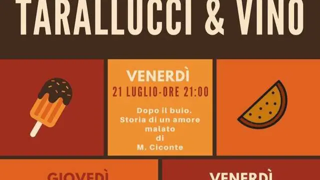 Questa sera, venerdì 21 luglio, alle ore 21, nella piazzetta antistante la “Fontana Vecchia” di Pizzo, sul corso Garibaldi, avrà inizio la mini rassegna “Tarallucci & Vino”. L’iniziativa, nata dalla collaborazione tra il coordinamento vibonese di Libera, l’associazione culturale Nish, la Cooperativa Kairos ed il circolo del Cinema “Lanterna Magica”, mira a creare momenti di incontro e confronto su tematiche di stretta attualità in un clima conviviale, sereno e di cordialità.