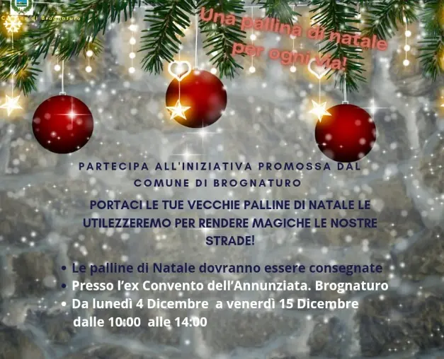 In occasione dell’Immacolata, l’8 dicembre, si terrà poi la tradizionale accensione dell’albero di Natale in piazza del popolo. Per l’occasione verrà offerta anche della cioccolata calda. Il 13 dicembre, poi, bimbi protagonisti con l’allestimento del Villaggio di Babbo Natale. Non mancheranno giochi, dolci e musica. Inizio alle ore 16.00. All’insegna della partecipazione comunitaria riparte invece l’iniziativa “Addobbamu la ruga 2 edizione”, in collaborazione con la Proloco “Damiano Valente e l’associazione Brognaturo nel cuore”. Lo scopo è quello di creare allestimenti natalizi lungo una via del paese. I partecipanti saranno premiati nella giornata dell’Epifania. Strettamente connesso è il progetto “Una pallina di Natale per ogni via”. Dal 4 al 16 dicembre, dalle ore 10.00 alle ore 14.00, sarà possibile donare addobbi di Natale non più utilizzati. Verranno poi impiegati lungo le strade cittadine per rendere più calda e colorata l’atmosfera delle feste. Gli eventi si chiuderanno il 6 gennaio 2024 con la premiazione della “ruga natalizia” e la zeppolata di chiusura festività.