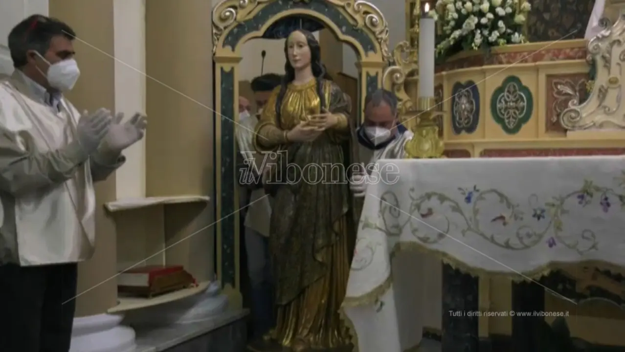 L’effigie viene collocata davanti all’altare e, alla presenza dei fedeli, viene vestita e allestita per affrontare nella giornata successiva la ‘Ncrinata. Per Dasà si tratta di un appuntamento con la fede e con la tradizione dal forte sapore identitario, lungo più di 300 anni. La storica statua della Vergine con il Gesù bambino viene idealmente abbracciata dalla comunità. Il parroco ha il compito di sistemare la statua vestendola con i colori della festa, l’azzurro e l’oro e poi, con le vesti del lutto rappresentato da un lungo mantello nero. In capo, viene poi riposizionata la corona d’oro mentre il bambino Gesù, che di solito viene sostenuto dalle braccia della Madonna, viene momentaneamente riposto. Sono tutti passaggi propedeutici che anticipano il grande evento del martedì. Per tutta la cerimonia, i fedeli accompagnano la intronizzazione con canti e preghiere.