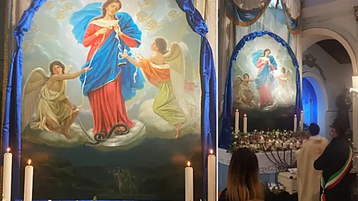 A illustrare il percorso che ha portato il quadro nella frazione cessanitese, proprio don Andrea: «In questi giorni bui per tutto il mondo – racconta – molti credenti e in particolare Papa Francesco si rivolgono alla Vergine Maria che scioglie i nodi e pregano per la fine della pandemia. Da qui mi è venuta l’idea di far preparare questa copia del dipinto. Il “nodo” offerto a Maria – spiega – è una difficoltà, una situazione particolare che stiamo vivendo, un momento della nostra vita alquanto complesso che vogliamo affidare alla Madonna nella speranza che ascolti la nostra supplica e “lo sciolga”».