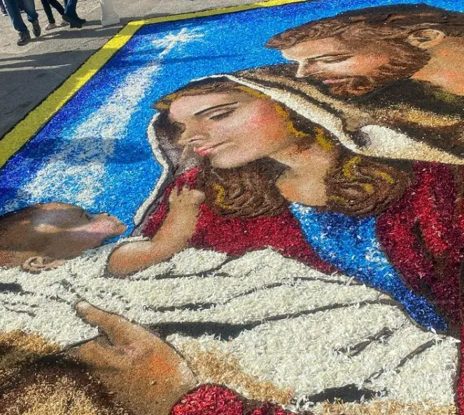 La scelta dei disegni avviene settimane prima dell’evento. Contestualmente, si valutano i colori e i fiori da utilizzare per migliorare l’impatto visivo. I tappeti ripercorrono scene dai Vangeli, immagini di Madonne, figure religiose. Quest’anno, i quattro rioni Torre, Glicine, Agave e Chiesa, avranno come fil rouge il tema del “Gesù Maestro”. Quest’anno non ci sarà una vera e propria competizione tra le i rioni. Le opere verranno valutate da una equipe che supervisionerà i lavori e verrà premiato chi meglio interpreta la visione generale del progetto, Nel tardo pomeriggio, alle 18.30, si terrà la celebrazione eucaristica presieduta da padre Luigi Scordamaglia al termine della quale si svolgerà la processione.