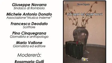 Sarà presentato sabato 6 febbraio, alle 17, presso l’auditorium comunale di Rombiolo, il libro “Gli anni dei sogni brevi”, scritto dal giornalista Franco Pagnotta, edito da Thoth edizioni, giovane casa editrice di Capo Vaticano.