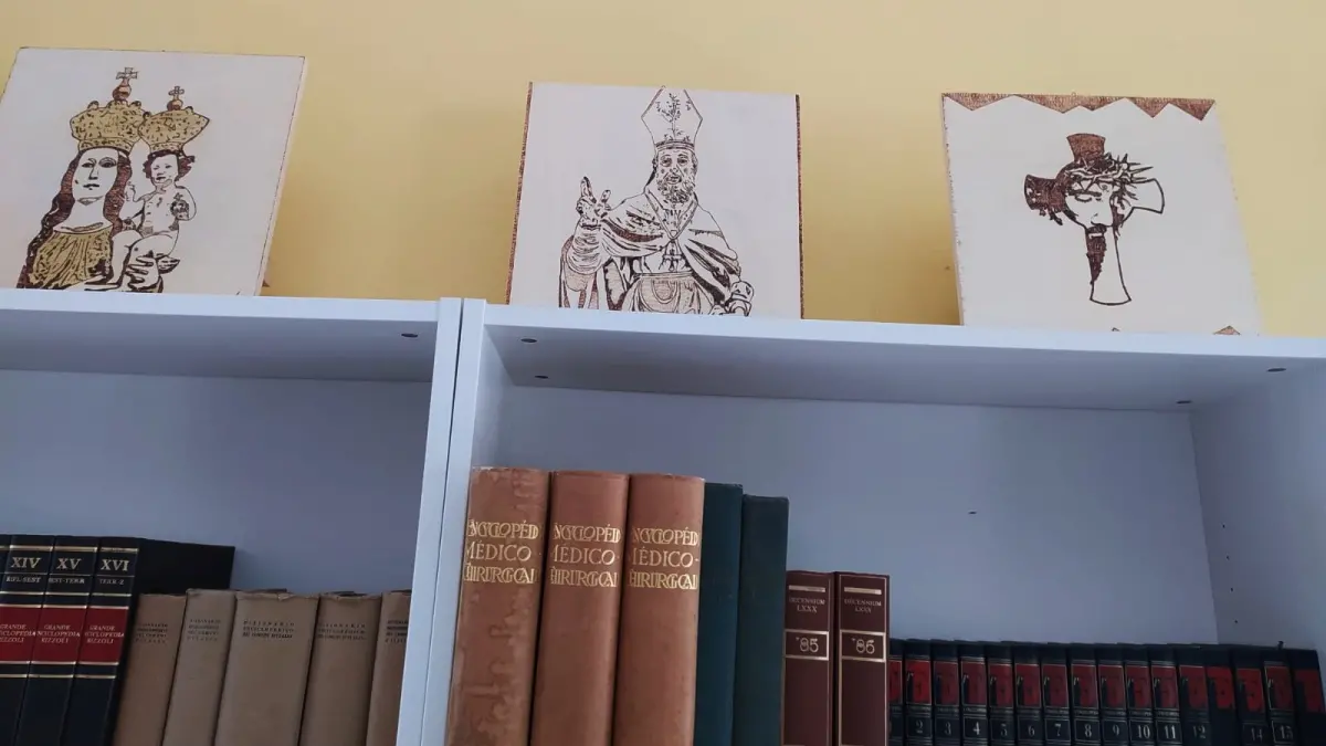 Visitabili presso la biblioteca sette creazioni del giovane artista locale Domenico Bruni. Le opere sono perlopiù a sfondo religioso e ritraggono santi, scene di fede e la Madonna della Consolazione a cui il piccolo centro delle Preserre vibonesi è tradizionalmente legato. Bruni, in particolare, si è appassionato di pirografia (scrittura col fuoco, tecnica di incisione) durante le scuole medie. Nel periodo di formazione scolastica infatti il giovane artista si è approcciato all’intaglio del legno attraverso un corso promosso dall’istituto frequentato. Una tecnica e un amore per le proprie radici che ha portato alla realizzazione di diverse opere sacre, poi donate alla parrocchia. Per la concretizzazione del progetto, le sue creazioni sono state consegnate alla biblioteca e quindi esposte. Al termine della mostra ritorneranno nella disponibilità della locale chiesa.