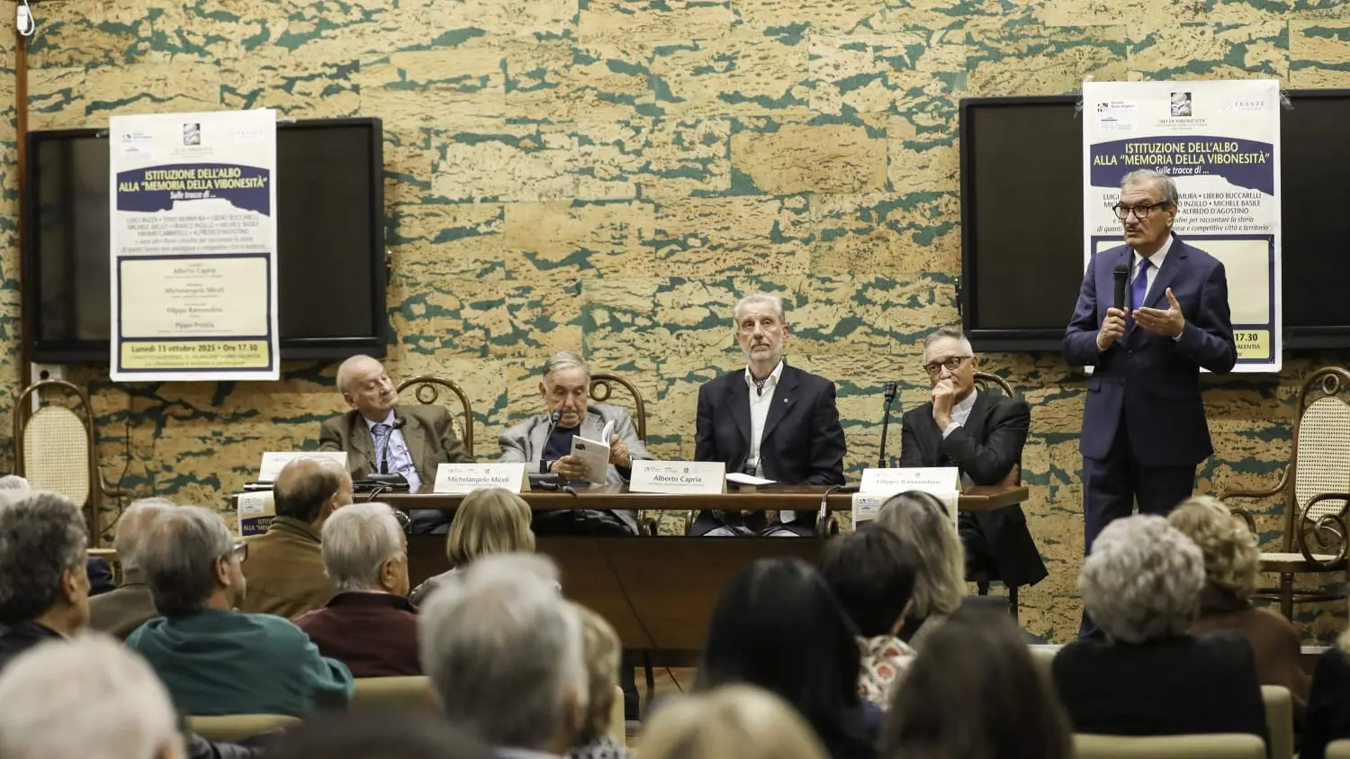 Si è svolto nell’Aula magna del Convitto nazionale “Gaetano Filangieri” l’evento promosso dall’associazione Ali di Vibonesità, culminato con l’«approvazione del messaggio per la creazione dell’Albo della Memoria», il primo passo verso un possibile percorso istituzionale volto a custodire e promuovere la memoria storica di Vibo Valentia. «L’incontro – ha fatto sapere l’Associazione stessa – ha registrato una partecipazione significativa da parte della cittadinanza», segno di un diffuso interesse per la valorizzazione della memoria storica locale. L’iniziativa si propone di «stimolare, in particolare tra i giovani, una maggiore conoscenza della storia contemporanea di Vibo Valentia e del suo comprensorio».