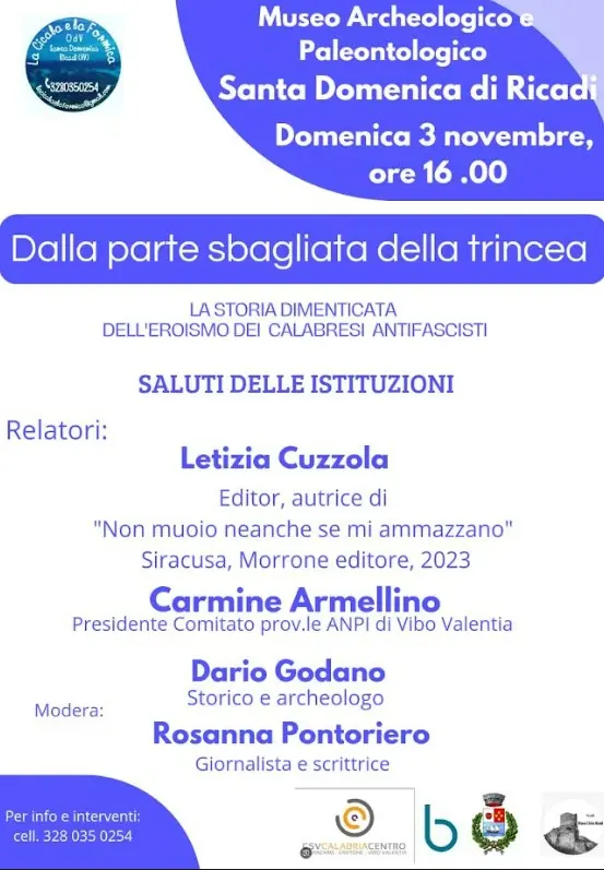 Come si legge nell’opera “Non muoio neanche se mi ammazzano” di Letizia Cuzzola – relatrice del convegno – «650mila soldati, in pochissime ore, furono catturati e deportati in Germania. Gli Internati Militari Italiani resteranno tali ben oltre il 25 aprile 1945. Non rientrano fra gli eroi della Resistenza, non rientrano tra i Partigiani, non rientrano nel novero degli italiani eroici». Il convegno dal titolo emblematico ed eloquente “Dalla parte sbagliata della trincea”, si terrà il 3 novembre alle 16.00, vi prenderanno parte, dopo i saluti istituzionali: Letizia Cuzzola, editor, autrice di “Non muoio neanche se mi ammazzano”, Morrone editore, 2023; Carmine Armellino, presidente comitato provinciale Anpi di Vibo Valentia; Dario Godano, storico e archeologo. A moderare l’evento Rosanna Pontoriero, scrittrice e giornalista. Un tuffo nella storia, partendo da un’opera documentaristica e narrativa.