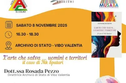 Durante l’appuntamento sarà presentato il volume della professoressa Caterina Malfarà Sacchini, “L’arte che salva… uomini e territori, il caso Nik Spatari”, dedicato al celebre artista calabrese Nik Spatari, pittore e scultore di fama internazionale che, grazie alla propria determinazione e resilienza, ha saputo superare le difficoltà legate alla disabilità, trasformandole in forza creativa. Docente di ruolo, due lauree in Lingue e letterature straniere moderne e in beni culturali, guida turistica abilitata dalla Regione Calabria, Caterina Malfarà Sacchini è profondamente legata alla sua terra e le sue molteplici iniziative ed attività sono sempre finalizzate alla promozione e valorizzazione della Calabria e del suo patrimonio artistico-culturale, mettendone in luce l'autenticità dei borghi e la storia millenaria che conservano tesori incantevoli, nascosti dietro inimmaginabili angoli di paradiso.