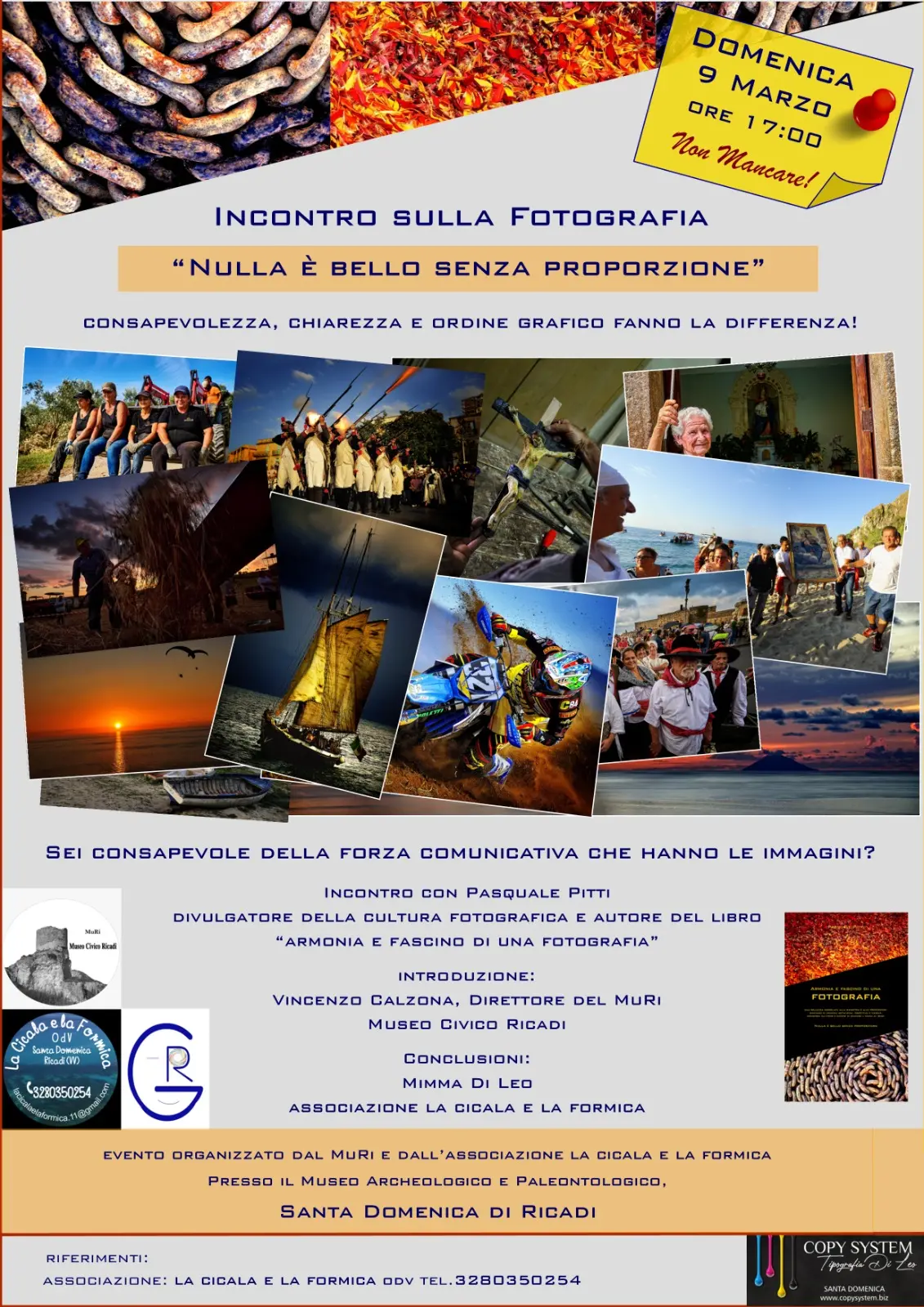 Al Museo paleontologico e archeologico di Santa Domenica di Ricadi, domenica prossima 9 marzo, alle 17, si terrà un incontro – seminario sulla fotografia, organizzato dall’associazione La Cicala e la Formica Odv e dalla direzione del Muri.