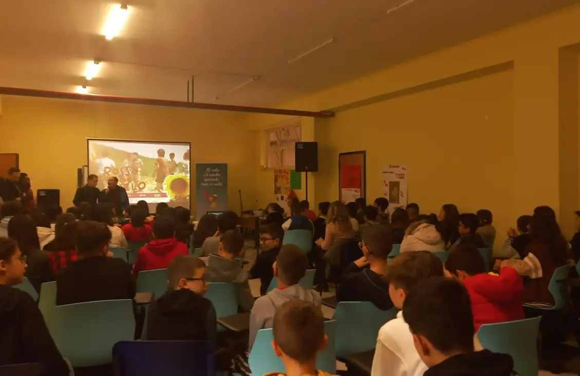La storia del film “Rosso come il cielo”, proiettato il 6 dicembre, parte da una vicenda reale, quella di Mirco Mencacci che, da non vedente, è diventato oggi uno dei più importanti montatori del suono del cinema italiano. Il film, che ha entusiasmato ragazzi e docenti, racconta la sfida di Mirco, il quale a dieci anni, dopo aver perso la vista per un incidente, lotta tenacemente contro i pregiudizi affinché i propri sogni si realizzino. Siamo negli anni settanta e la legge vieta ai bambini ciechi di frequentare le normali scuole pubbliche. Il bambino è quindi costretto a proseguire gli studi in un istituto per ciechi a Genova, dove vige un sistema educativo arretrato che lo destina alla rinuncia della propria personalità. Ma il protagonista non si arrende e quando un giorno trova un registratore e scopre che può raccontare delle storie fatte di suoni e rumori, capisce di aver trovato la sua strada, aiutato in ciò da una bimba vedente di nome Francesca. Anche se osteggiato dall’istituto, Mirco coltiva la sua passione e, con l’appoggio degli altri bambini e di don Giulio, mette in scena una “favola sonora”, dando a tutti un’opportunità per esprimere sé stessi e la proprio fantasia. La storia di “Rosso come il cielo” è soprattutto questo: un esempio di determinazione e di coraggio, anche quando ci si trova in una situazione di svantaggio; un esempio di libertà; un’occasione per comprendere meglio quante risorse, spesso inesplorate, vi siano in ognuno di noi e quanto la diversità rappresenti un’enorme ricchezza, partendo – come nella storia di Mirco – dalla valorizzazione dei sensi residui e dal coinvolgimento di chi vive nella medesima situazione.
