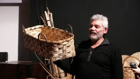 Il momento clou della serata è stata la performance del maestro artigiano Aldo Mammoliti, che ha catalizzato l’attenzione dei presenti con la realizzazione, con fascette di castagno, di un cesto, che anticamente veniva usato anche come culla per i neonati.