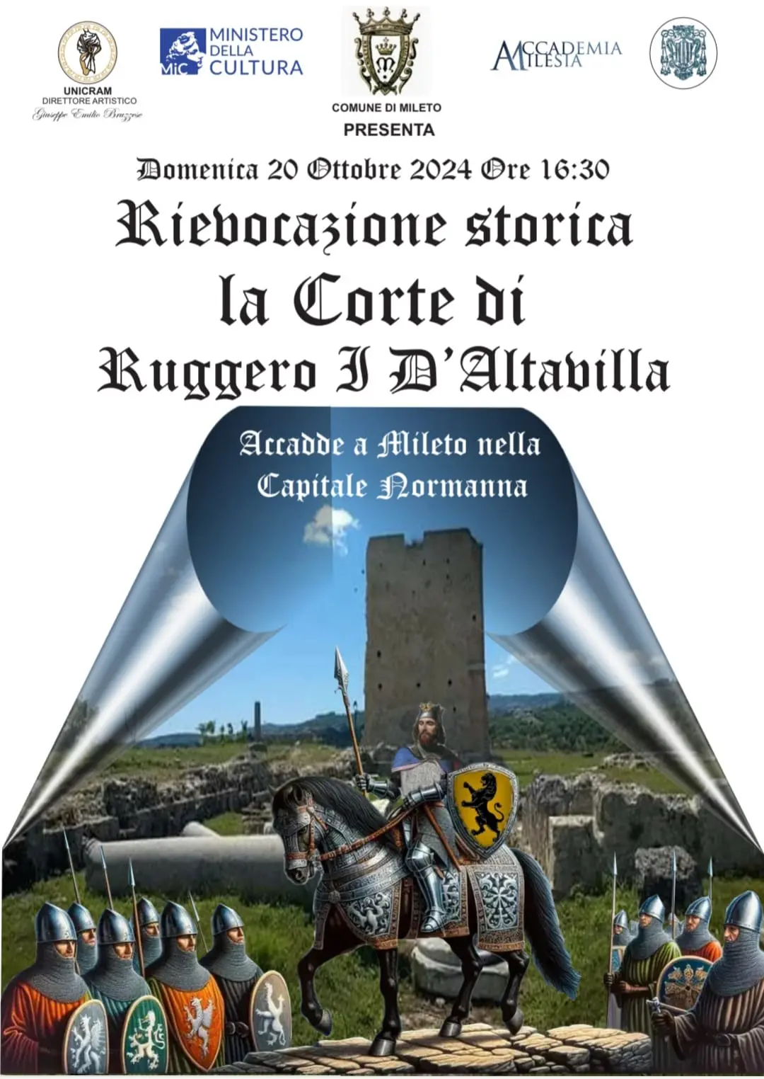 Ritorna a Mileto il Corteo storico normanno. L’appuntamento è per domenica 20 ottobre. La manifestazione culturale sarà organizzata dall’amministrazione comunale con il contributo della Regione Calabria, la direzione artistica dell’associazione Unicram di Reggio Calabria e la consulenza storica della locale “Accademia Milesia”. Il corteo in costumi d’epoca prenderà il via alle ore 16 lungo le vie principali del centro cittadino. Prevista la partecipazione di circa 100 figuranti. Esso permetterà di rievocare alcuni momenti salienti dell’illustre trascorso normanno di Mileto, nell’XI secolo elevata da Ruggero D’Altavilla a capitale della propria contea, nell’ambito del processo di rilatinizzazione del meridione d’Italia attuato con il fratello Roberto il Guiscardo.