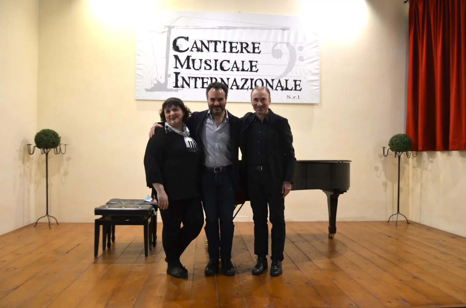 Vittoria Caracciolo e Nunzio Dello Iacovo, invece, nella splendida cornice dell’auditorium di palazzo San Giuseppe hanno proposto con successo una riduzione a quattro mani di Leon Conus della sinfonia n. 3 op. 43 “Le Divin Poème” di Skrjiabin, con introduzione I (Lotte), II (Delizie) e III (Gioco Divino). Anche in questo caso, unanime l’apprezzamento del pubblico presente. La calabrese Caracciolo è diplomata in Didattica della Musica ed in Clavicembalo. Vincitrice di concorsi nazionali, è titolare di una cattedra di Pianoforte principale presso il Conservatorio di Musica “F. Cilea” di Reggio Calabria. Dello Iacovo, dal canto suo, diplomato con lode al Conservatorio “Santa Cecilia” di Roma, ha proseguito gli studi con i pianisti J.B. Pommier e P. Badura Skoda. Premiato in concorsi pianistici nazionali e internazionali, a 21anni ha debuttato all’estero con una tournèe in Germania, a cui hanno fatto seguito esibizioni in importanti teatri europei. Da quindici anni collabora con il noto compositore Luciano Sampaoli dalla quale è scaturita una intensa produzione di opere, concerti, convegni e discografica. Attualmente è titolare di una cattedra di Pianoforte principale al Conservatorio “N. Rota” di Monopoli.