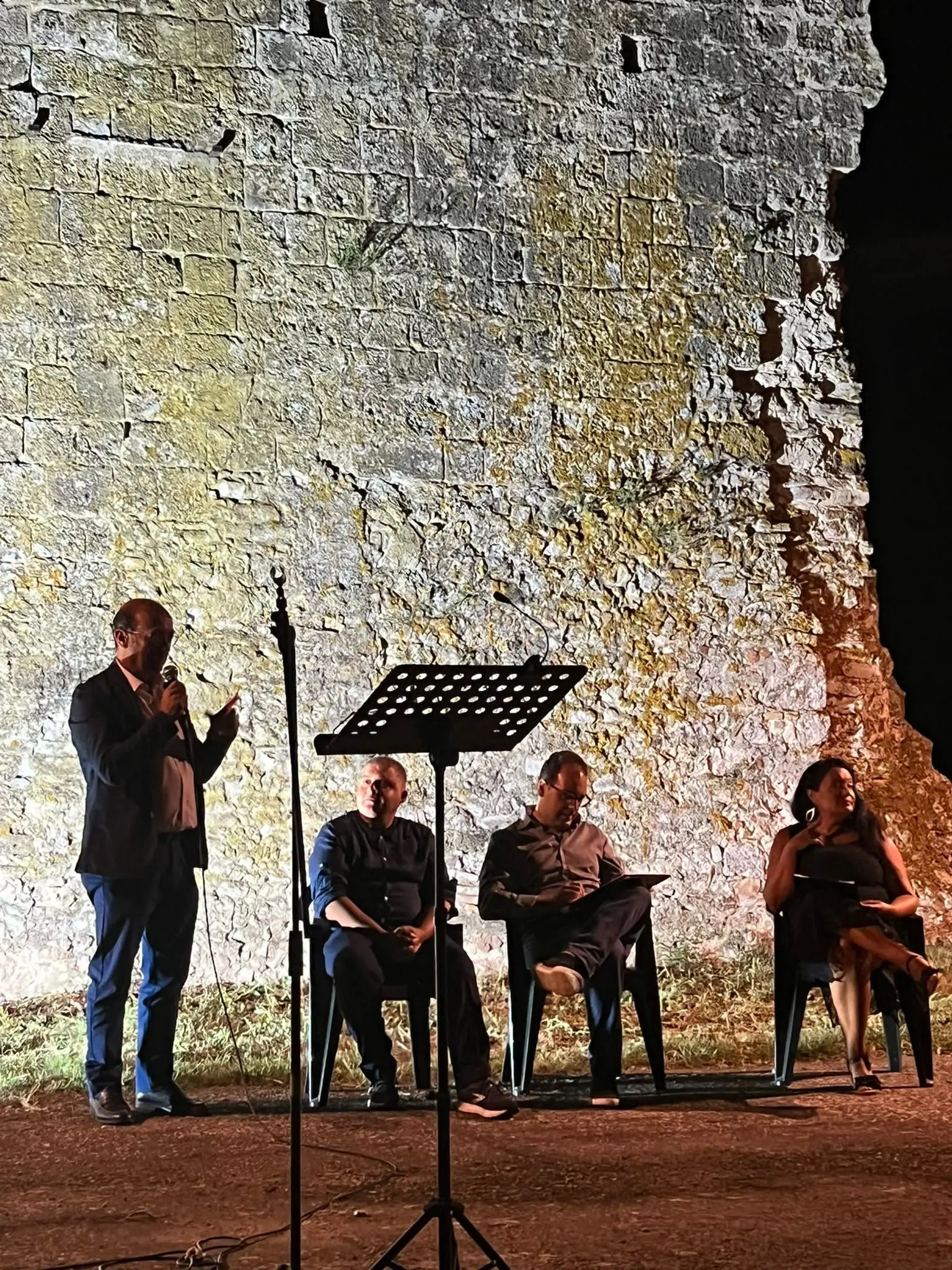 Pubblico numeroso e attento all’evento culturale “Battiti calabresi” organizzato dal Comune di Mileto presso il Parco archeologico medievale, in sinergia con l’“Edizioni Beroe”. Alla buona riuscita della manifestazione hanno collaborato l’associazione “Mnemosyne”, ente gestore del sito, le locali realtà Accademia Milesia, Pro Loco e Avis e lo sponsor Rupes. Nell’occasione, con sullo sfondo lo splendido scenario serale dei ruderi dell’antica abbazia normanna della Santissima Trinità e dello stretto di Messina, sono stati letti e interpretati brani di Leonida Repaci, Corrado Alvaro, Goffredo Parise, Guido Piovene e dello studioso locale Giuseppe Occhiato, e testi tratti da canzoni di Rino Gaetano e Mia Martini. A farlo, con il coinvolgente sottofondo musicale della pianista Chiara Currà, gli attori Giuseppe Ingoglia e Dolores Mazzeo. Le riuscite e apprezzate recitazioni sono state intervallate dai dialoghi tra il giornalista Francesco Iannello e Renato Costa, sui temi della cultura in Calabria e sulla necessità di focalizzare l’attenzione sugli autori regionali.