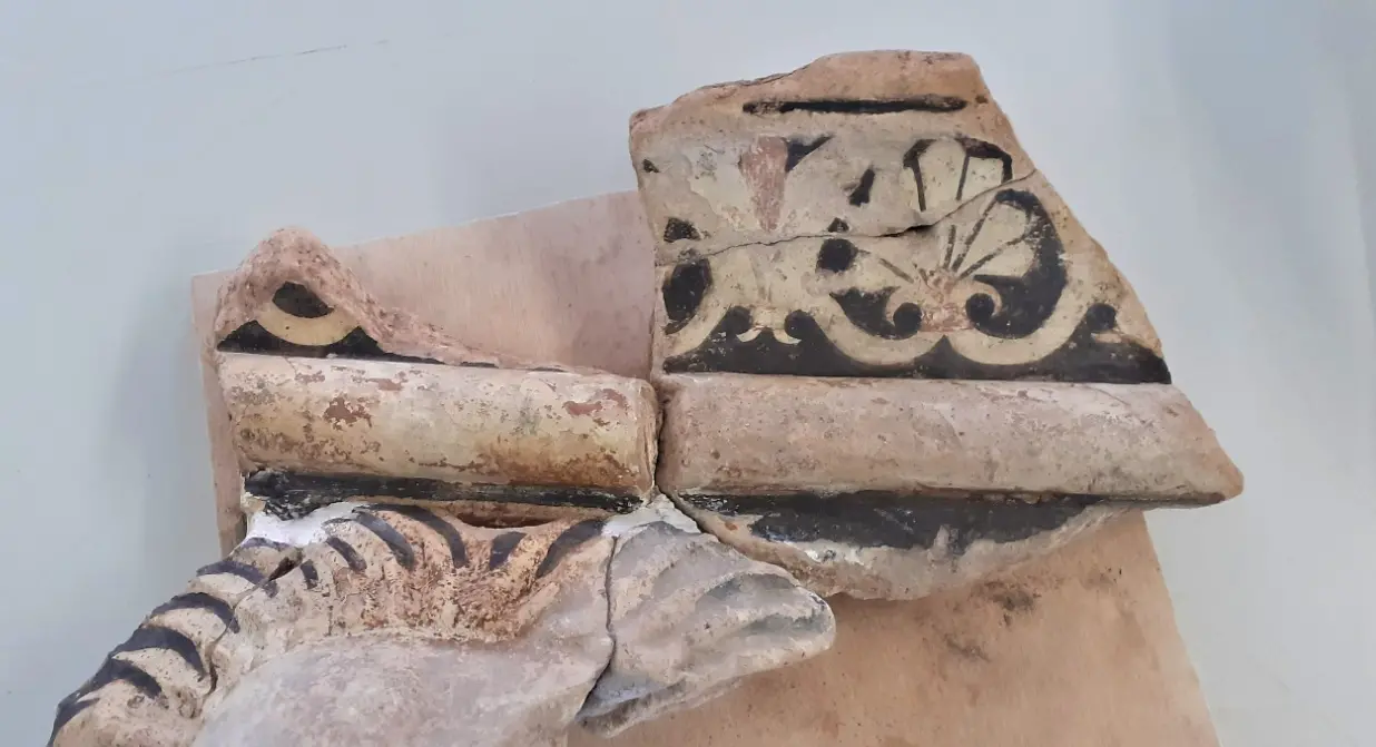 Il sito è stato oggetto di forte spoliazione: «Molto poco è rimasto dell’elevato, tra cui alcuni frammenti di elementi architettonici (cassetta -sima) – conservati al Museo archeologico “Capialbi”- che dovevano fare parte del sistema di copertura del tempio. La decorazione presenta un motivo a doppia treccia di colore nero su fondo bianco crema con elementi anche in rosso (foto dalla pagina fb del Museo di Vibo). Il motivo a doppia treccia, che doveva fare parte di questo edificio, trova puntuali confronti con altri tempi magnogreci e sicelioti». Puntuali confronti si hanno più nel dettaglio «con l’artigianato siracusano e locrese». E come rimarcato dallo studioso: «Si ravvisa uno stile che assomiglia molto a quello delle decorazioni frontonali alcuni templi molto famosi, come l’Apollonion di Siracursa. Lo stile della struttura sacra vibonese si mescola però anche ad elementi che risentono fortemente dell’artigianato locrese».