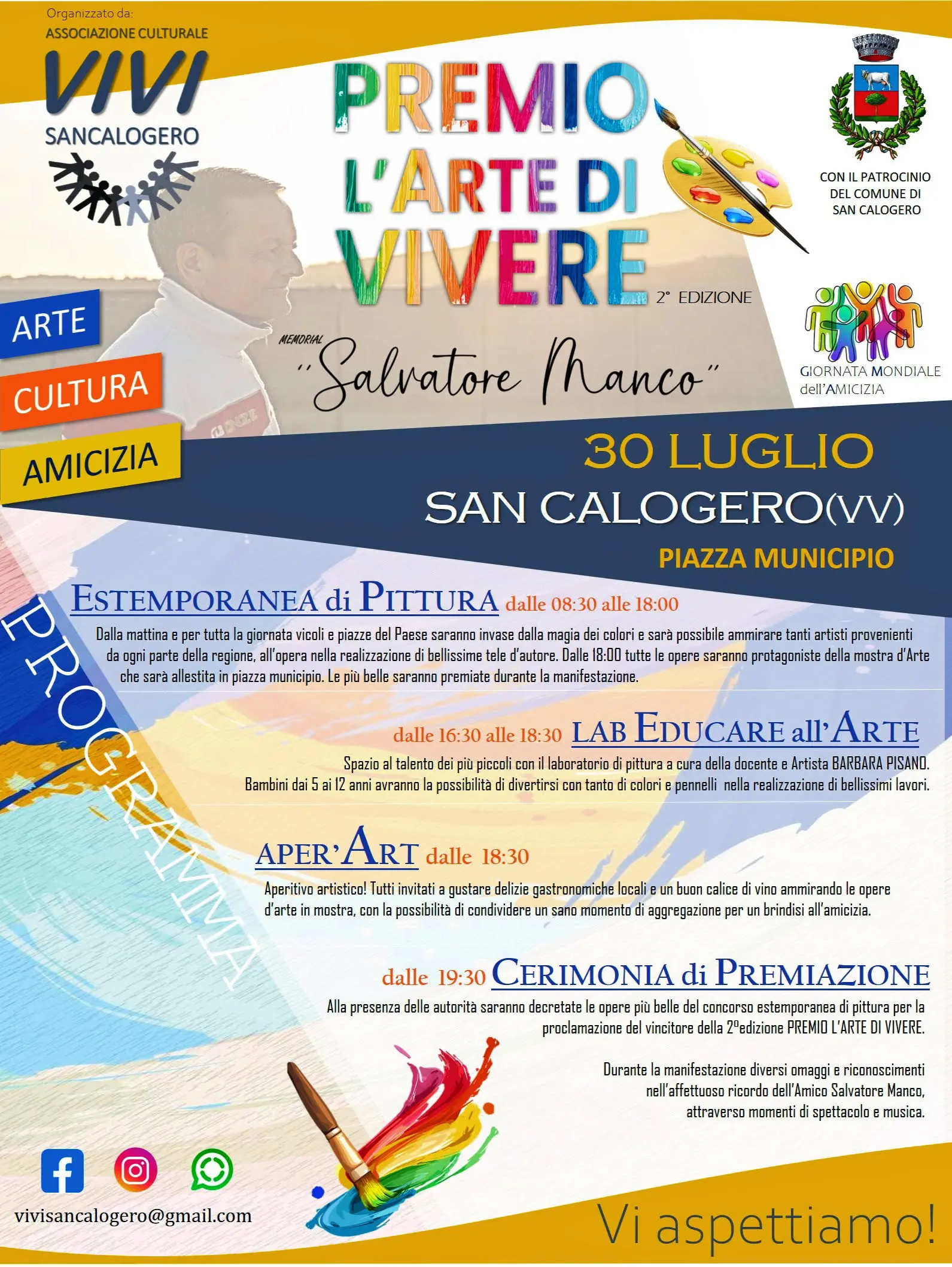 A San Calogero tutto pronto per il “Premio l’arte di vivere”, memorial in ricordo di Salvatore Manco, presidente dell’associazione Vivi San Calogero e scenografo della Compagnia teatrale sancalogerese prematuramente scomparso.