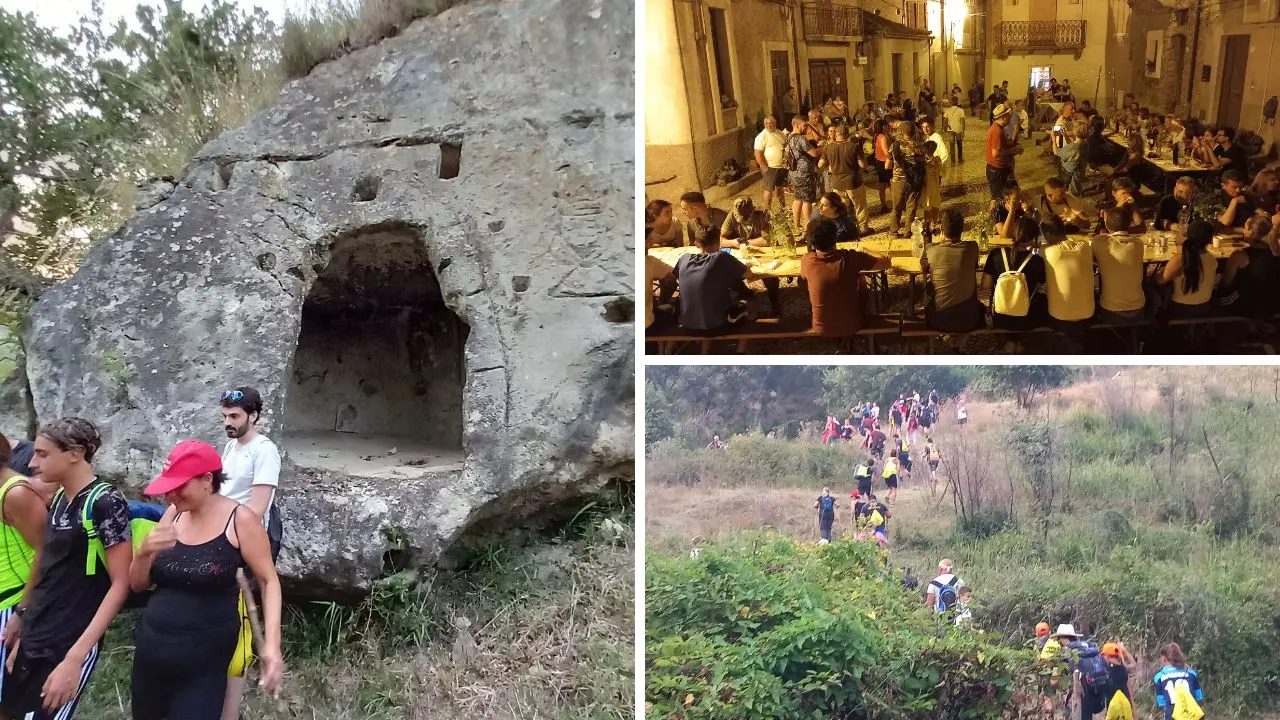 L’itinerario ha avuto come tappe intermedie un canale ad archi che azionava un mulino ad acqua, il santuario di Santa Croce, la grotta eremitica dei Tavolari (X-XI secolo) luogo di eremitaggio per i monaci italogreci seguaci di San Basilio; poi un suggestivo casolare di terra cruda (costruito con le tradizionali “breste”); ed infine, come ultima tappa, il centro storico di Motta Filocastro con le “Porte della memoria”: una rievocazione artistica di personaggi e citazioni tratte dal romanzo di Pietro Lazzaro “Mille anime” che hanno ripopolato le porte delle case abbandonate. Il percorso (di circa 7 km) è stato accompagnato dagli zampognari di Cardeto, ma anche da musicanti locali che hanno animato i camminatori con canti e balli al ritmo della tarantella. Un viaggio alla riscoperta dello stare insieme e fare festa insieme alla natura, come nei culti delle civiltà antiche per risvegliare memorie ancestrali dando forma all’inconscio collettivo come negli archetipi. A fare da guida Francesco Biasi che ha illustrato il territorio sotto il profilo storico e artistico; mentre il presidente dell’associazione “Il Tocco” Graziano Ciancio ha accompagnato gli ospiti raccordando i vari momenti lungo il dispiegarsi del percorso.