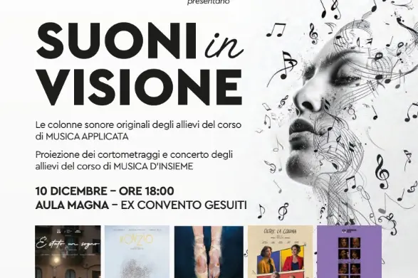Suoni in Visione – anticipano i promotori nella nota stampa di presentazione - è più di un evento: è un’occasione per osservare da vicino la sinergia tra giovani talenti, esplorare nuove forme espressive e scoprire quanto le immagini possano parlare attraverso la musica. Una serata che conferma l’impegno del Conservatorio nel promuovere esperienze culturali innovative, aperte alla comunità, e nel valorizzare la formazione interdisciplinare dei propri allievi.