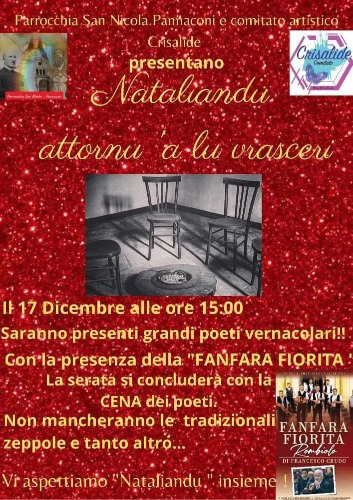 Valorizzare il dialetto, il patrimonio storico e linguistico che porta con sé. Al contempo omaggiare le proprie tradizioni culturali. Su queste basi si innesta il progetto “Nataliandu a Pannacuni attorunu a’ lu vrasceri”. L’appuntamento, in programma il 17 dicembre nella frazione di Cessaniti, è frutto del lavoro portato avanti dalla parrocchia San Nicola guidata dal don Felice Palamara in sinergia con il comitato “Crisalide, arte e cultura” rappresentato da Romina Candela. Proprio la presidente del sodalizio anticipa: «Si tratta di un’iniziativa -spiega- nata per valorizzare la nostra lingua d’origine, per non dimenticare le nostre radici». Saranno presenti a quest’evento poeti importanti della nostra provincia tra cui Pippo Prestia, Francesco Restuccia, Francesco Fiamingo, Giuseppina Prostamo, Michele Celano, Rosa Veneziano, Romina Candela, don Felice Palamara. Tutto si svolgerà attorno al “braciere” «simbolo di una realtà vissuta e mai dimenticata». Infatti, ricorda la presidente di “Crisalide” «attorno al braciere ci si riuniva non solo per riscaldarsi ma per raccontare le fatiche svolte durante la giornata, ci si riuniva per pettegolezzi. Quel braciere ha anche visto le lacrime di tante sventure, sorrisi, gioie, favole fantastiche ricche di tante emozioni raccontate dai nostri nonni». Ad arricchire il momento culturale, le musiche del gruppo Fanfara Fiorita di Rombiolo. Non mancherà una ricca zeppolata, simbolo della tradizione culinaria natalizia. Ringraziamenti da parte della referente del sodalizio, sono giunti all’indirizzo della comunità di Pannaconi e al parroco, promotore di diverse iniziative in programma durante le feste di Natale. Tra gli appuntamenti in programma: la mostra dei presepi, eventi musicali, premio poesia e lettera e Gesù Bambino.