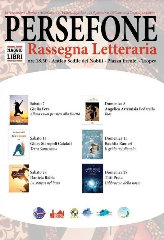 La rassegna si concluderà nell’ultimo fine settimana di maggio con la scrittrice catanzarese Daniela Rabia “La stanza nel buio” (Pellegrini Editore) sabato 28 e con la scrittrice, saggista e docente vibonese Titti Preta “L’abbraccio della notte” (Youcanprint Editore) domenica 29. «La manifestazione – scrivono i promotori-assume il nome di “Persefone” in omaggio all’antica divinità femminile, simbolo della forza rigeneratrice della natura, allegoria del ritorno dal mondo degli Inferi alla vita rigenerata, del rifiorire della gioia, della creatività e dei sentimenti. Un nome augurale carico di speranza per un rinnovamento collettivo e per un “Rinascimento calabrese”».