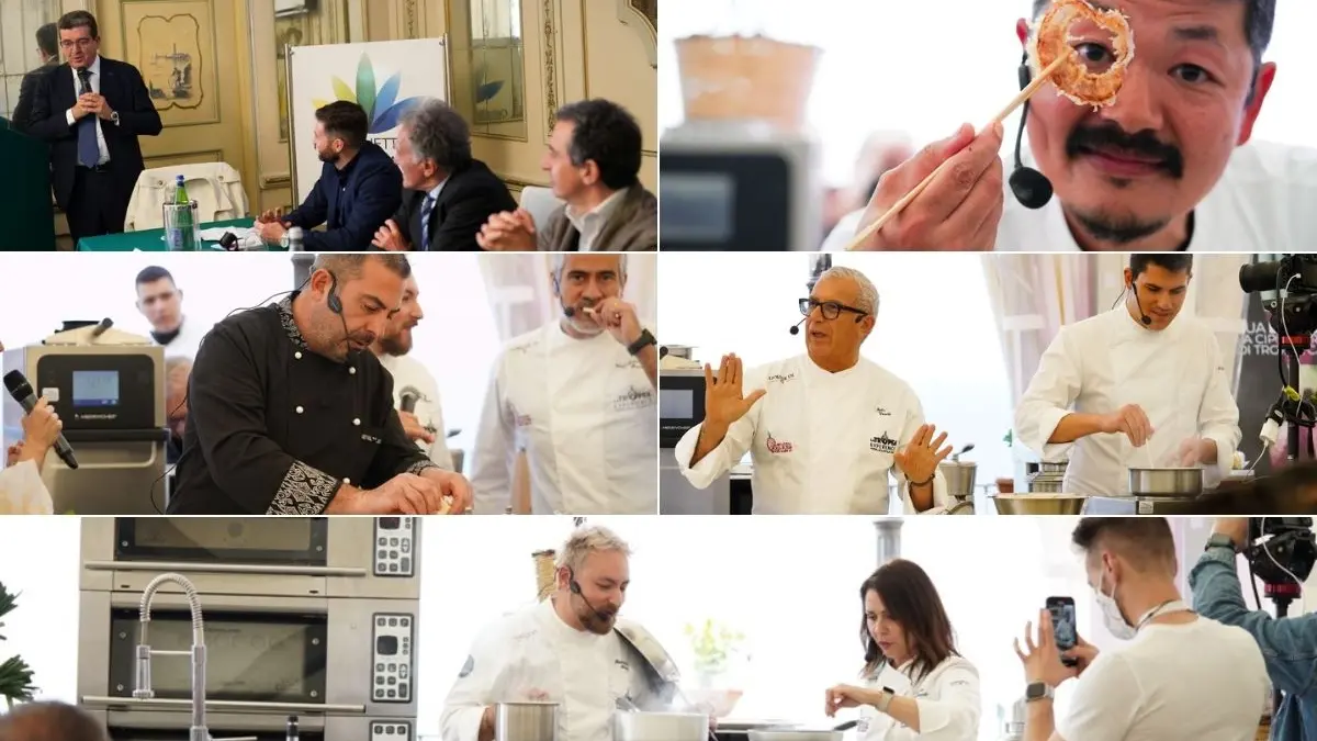 Le vongole veraci con salsa moho, verde di prezzemolo e coriandolo, tipica delle Canarie, abbinata alla Rossa di Calabria dalla chef e scrittrice londinese Nina Parker. I conchiglioni risottati, cotti in riduzione di buccia di piselli, fritti in extravergine d’oliva e riempiti di una nuvola di parmigiano e cipolla, ricetta proposta da Igles Corelli. Entrambi sono tra gli ambasciatori internazionali chiamati a declinare nel piatto la dolcezza di un prodotto agroalimentare capace di raccontare nel mondo eccellenza e bellezza della destinazione Calabria. Succede ora all’ombra della pagoda allestita in piazza cannone, quartier generale dell’evento che anche nella seconda giornata sta facendo registrare successo di partecipazione.
