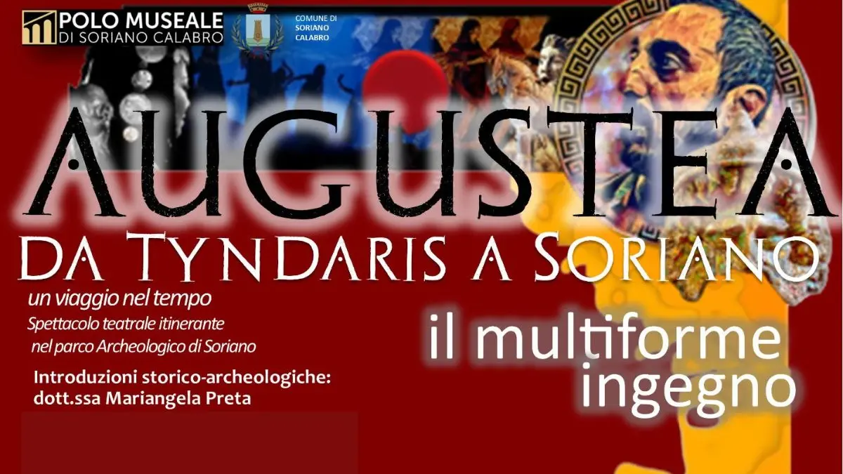 Da un’idea di Anna Ricciardi cinque anni fa, la Tyndaris Augustea si è trasformata in un’occasione culturale da non perdere in Sicilia e in Calabria. Sono quattro le tappe dello spettacolo itinerante nei parchi archeologici, successo per le prime due Tindari e a Naxos , il 24 agosto, ore 21, 30, sarà la volta di Soriano Calabro, unica tappa calabrese, dove le introduzioni storiche archeologiche a cura di Mariangela Preta, direttore del Polo Museale di Soriano, saranno uno strumento prezioso per immergersi nelle antiche atmosfere e a seguire il 26 a Lipari. [Continua in basso]
