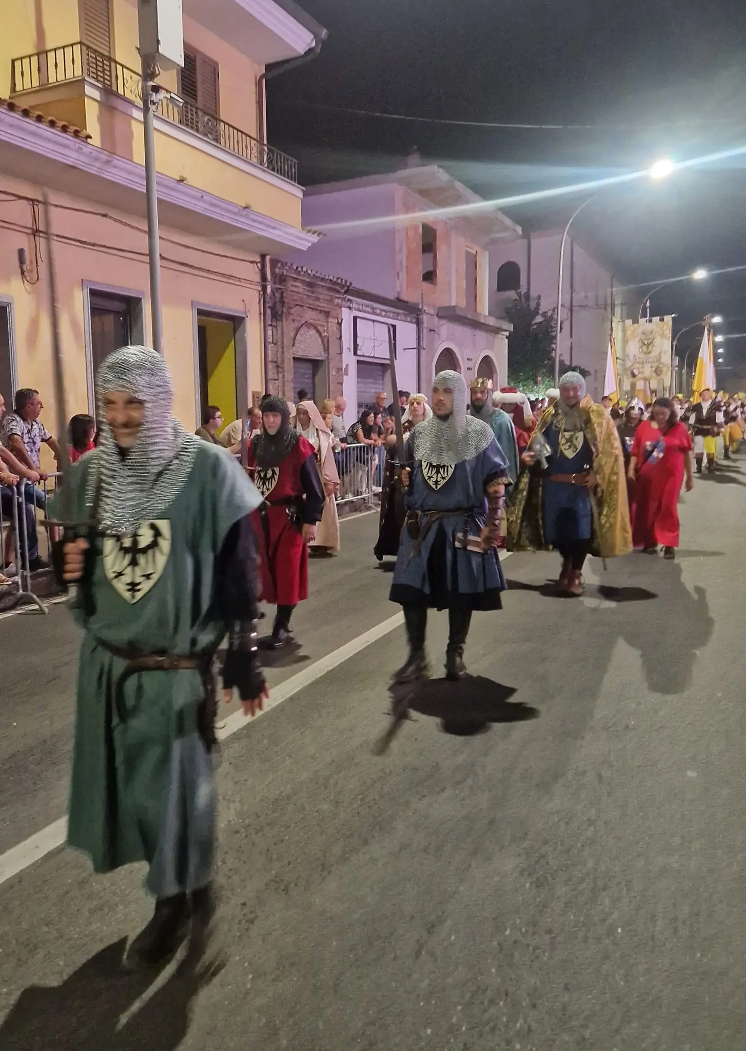 L’edizione 2024 del Corteo storico normanno ha avuto un seguito in tarda serata nella nuova Mileto, all’interno delle vie del centro e in piazza Pio XII. Qui fino a notte inoltrata è rimasto aperto al pubblico il locale Museo nazionale – con i suoi preziosi reperti provenienti dal vecchio sito e attinenti anche al glorioso trascorso normanno – e sono entrati in scena cavalieri, trombonieri, sbandieratori e giullari che, per la gioia delle centinaia di persone occorse all’evento, hanno dato vita a una serie di tipici spettacoli medievali, tra cui le avvincenti giostre. Anche quest’anno la rassegna è stata proposta dall’amministrazione comunale con fondi della Regione Calabria e in collaborazione con la locale associazione culturale “Accademia Milesia”. Tra i vestiti utilizzati dai figuranti, anche quelli d’epoca prodotti dal Comune di Mileto nell’ambito della Sturt Up “Sartoria normanna”.