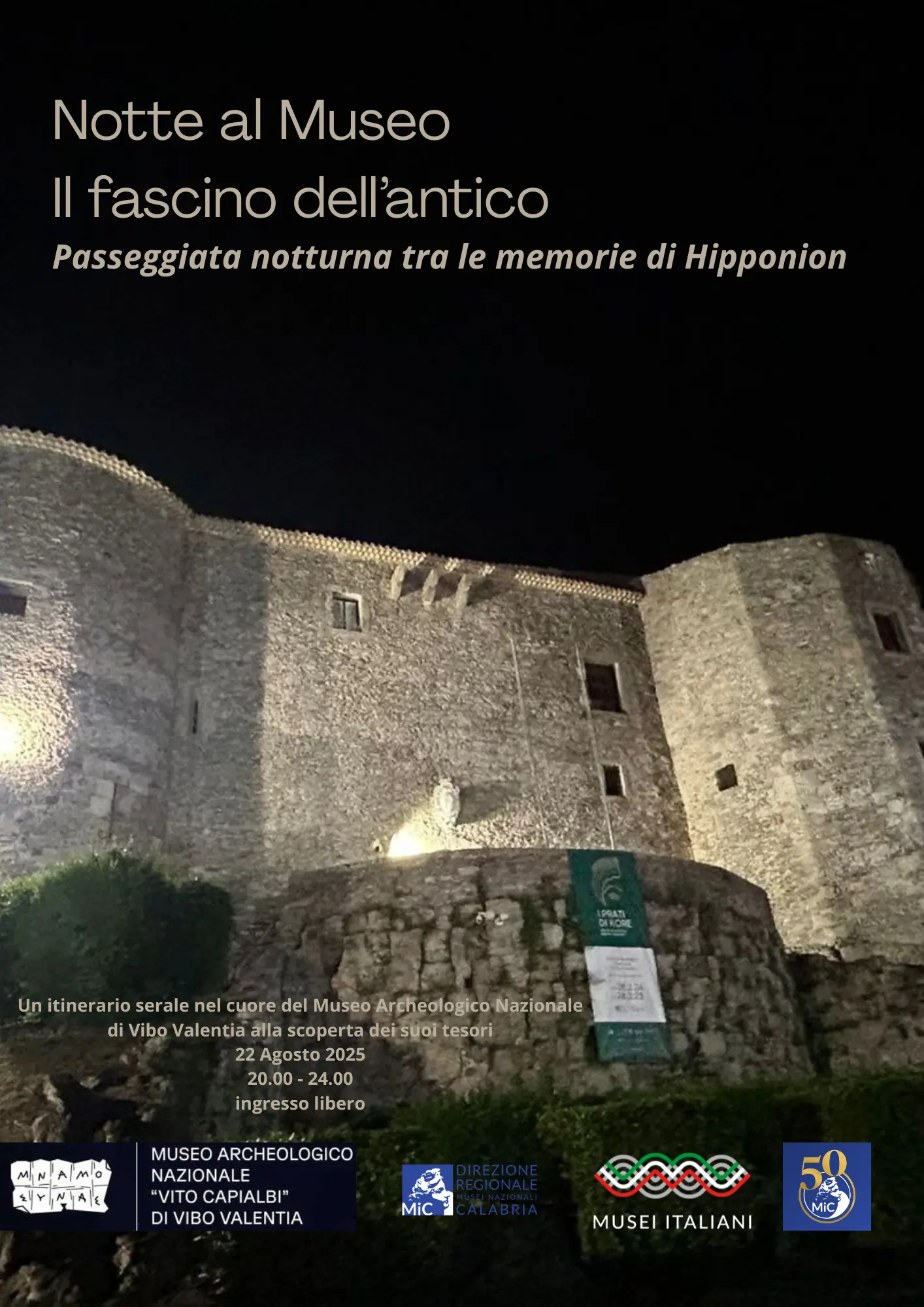 A conclusione dell’incontro il poeta Antonio Malatesta presenterà la sua nuova traduzione della laminetta di Hipponion “Testo sacro a Mnemosyne”. Subito dopo i partecipanti all’evento potranno prendere parte a una degustazione di vini offerti dalla cantina Marchisa. In occasione del convegno internazionale sui temi dell’orfismo e delle credenze escatologiche in Magna Grecia il Museo archeologico nazionale Vito Capialbi rimarrà, tra l’altro, straordinariamente aperto al pubblico fino alle ore 24, con la possibilità per i presenti di partecipare a visite guidate serali che li condurranno tra le collezioni permanenti e i reperti legati alla storia di Hipponion, esposti tra le mura dell’antico maniero. Un appuntamento imperdibile, “notte al museo con il fascino dell’antico”, occasione privilegiata che unisce archeologia, poesia e divulgazione, offrendo ai presenti la possibilità di intraprendere un avvincente viaggio a ritroso nel tempo tra mito, storia e spiritualità.