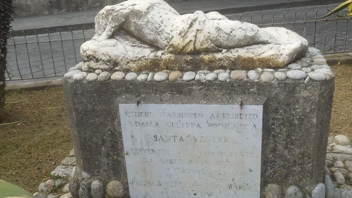Verso la fine dell’800, durante i lavori per la costruzione del tracciato ferroviario, venne rinvenuto un rudere marmoreo che, a prima vista, sembrò possedere le sembianze di una donna sdraiata e coperta dal suo manto. Essendo venuta alla luce nell’area denominata Santa Venere, la cultura popolare identificò in essa un simulacro della martire proto-cristiana Santa Venera, anche se potrebbe in realtà rappresentare una figura pagana e cioè “Arianna addormentata nell’isola di Nasso”.