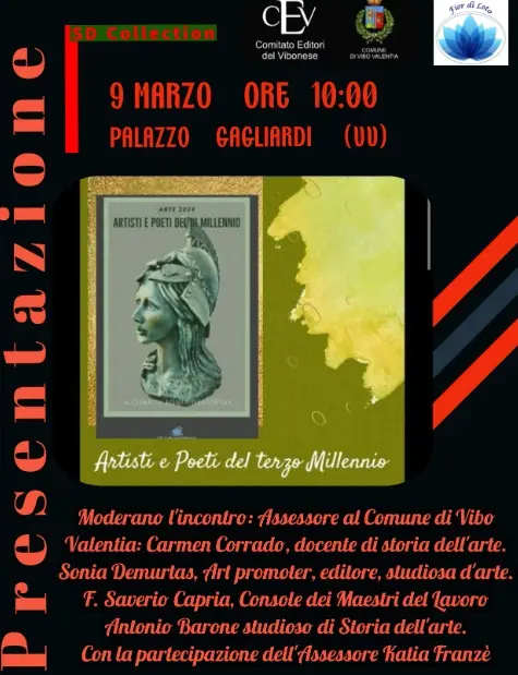 Palazzo Gagliardi a Vibo Valentia ospiterà la presentazione del quarto volume di “Artisti e poeti del III Millennio”, a cura di Sonia Demurtas, editrice e studiosa di storia dell’arte. L’iniziativa, in programma il 9 marzo, dalle ore 10.00, prevede la mostra di tutte le opere presenti nel libro e di alcuni artisti che sono rientrati nella top 10 del Premio “Arte San Valentino”. In questa circostanza sarà premiato anche Gregorio Procopio vincitore del contest realizzato in occasione del 14 febbraio. Sulla sua arte sarà incentrata anche una mostra personale con esposizione di nuovi dipinti. L’evento sarà moderato dalla docente di Storia dell’arte Carmen Corrado, assessore del Comune di Vibo Valentia. Sarà presente anche l’assessore Katya Franzè, il console dei maestri del Lavoro della Calabria Francesco Saverio Capria, lo studioso Antonino Barone e l’editrice e critica d’arte Sonia Demurtas. Tramite “Artisti e poeti”, si punta a valorizzare l’arte ma anche l’artista, la sua storia, la sua figura professionale. Spazio, ovviamente, alle opere protagoniste indiscusse del libro: «La partecipazione a un volume come questo – ha spiegato l’editrice – può essere un passo importante per l’esordio ufficiale nel mondo dell’arte e della scrittura, ma anche una conferma delle proprie capacità». E ancora: «Nelle opere dei nostri artisti troviamo un richiamo di forte attaccamento alla storia, alle radici. Sono opere che meritano di essere conosciute e diffuse per la loro qualità letteraria e per la loro bellezza artistica». Il volume sarà inviato gratuitamente alle più importanti biblioteche italiane affinché li acquisiscano ufficialmente nel loro patrimonio librario: «Il codice Isbn – ha aggiunto Demurtas – permette inoltre alla nostra antologia di essere reperibile in 89 Paesi del mondo».