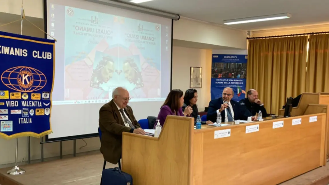 L’aula magna dell’Istituto istruzione superiore, Istituto tecnico industriale e Istituto per geometri di Vibo Valentia ha ospitato l’incontro dibattito sull’intelligenza artificiale e le applicazioni in campo scientifico. L’evento è stato promosso dalle scuole su impulso della dirigente Maria Gramendola e dell’associazione vibonese Kiwanis discutere sul “potere degli algoritmi” e i suoi ambiti di utilizzo, con particolare attenzione a quelli di ambito medico . A relazionare, Teresa Pugliese, presidente Kiwanis di Vibo Valentia, Onorato Passarelli, docente dell’istituto, nonché membro dell’equipe formativa della Calabria, Francesco Sicari, medico audiologo, coordinati da Bruno Risoleo, neuropsichiatra infantile. Ha introdotto i lavori la professoressa Anna Mandarano in sostituzione della ds Gramendola impossibilitata a partecipare. [Continua in basso]