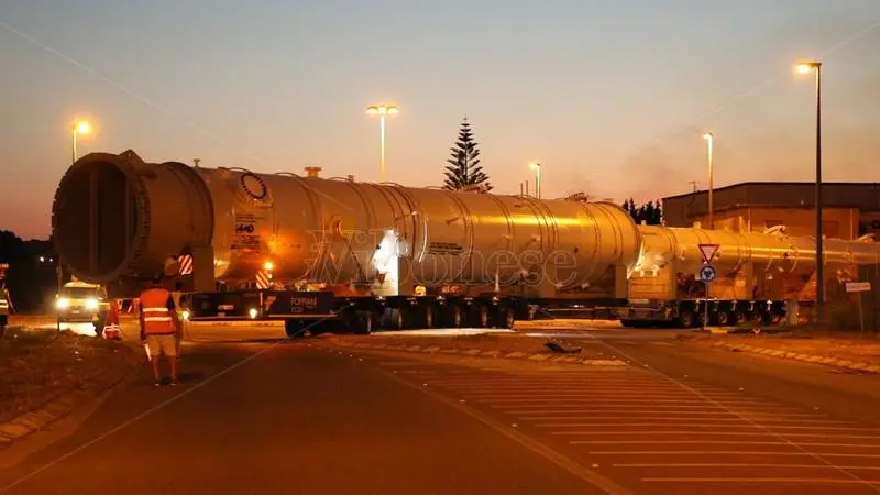 La colonna ha cominciato il suo percorso questa sera da Portosalvo, dove è stata assemblata nei giorni scorsi unendo due grandi pezzi realizzati nella sede di Rombiolo dell’azienda metalmeccanica. All’alba arriverà al porto, dove entro il giorno successivo giungeranno altre 7 colonne più piccole, tra i 20 e i 38 metri. Gli elementi saranno poi caricati su una nave che farà rotta verso la Russia, nell’ambito di una commessa del gruppo ingegneristico Tecnimont. La destinazione finale è un impianto di Omsk, nella Siberia sud-occidentale.