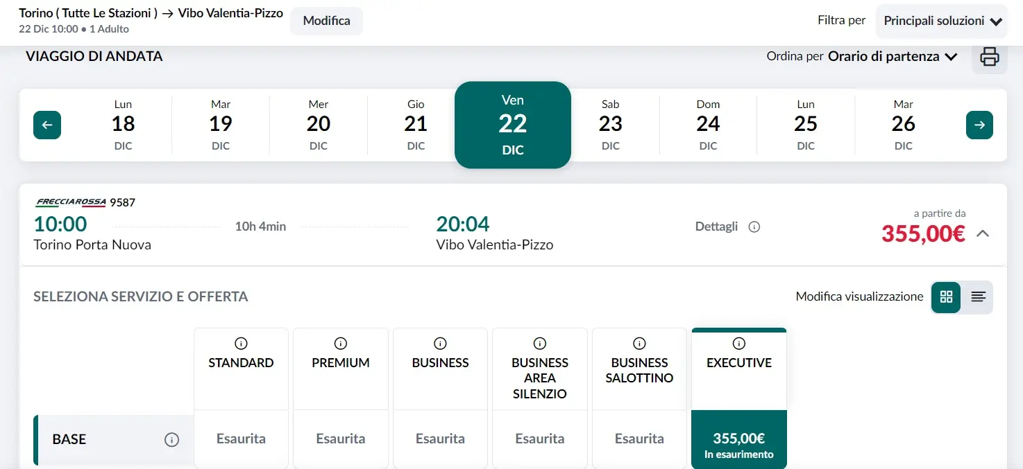 Con il Frecciarossa, da Torino Porta Nuova a Vibo Valentia-Pizzo, cifre intorno ai 350 euro (in esaurimento in data 10 dicembre 2023) con un cambio a Bologna. Con medesimo mezzo, da Milano Centrale alla stazione vibonese, con un viaggio di poco meno di 9 ore, 330 euro. Con Italo, previsti scontri fino al 30% per l’acquisto di ticket e partenze dal 19 dicembre, ma restano disponibili sono i biglietti per 18 e 19 dicembre (prezzi relativamente bassi intorno ai 110 euro, solo andata). Non acquistabili quelli dal 20 al 24 dicembre. Tante famiglie, visti i prezzi improponibili, scelgono di muoversi con auto propria andando ad affrontare un viaggio che attraversa l’Italia da Nord a Sud. Partendo dalla Lombardia, senza intoppi, code, incidenti, si prevede un viaggio di 11-12 ore. I costi? Con partenza dalla Pianura Padana, destinazione Vibo, si spendono 50 euro di pedaggio (Mantova-barriera Salerno). Per il carburante, i prezzi negli anni sono aumentati. Si passa dai 90 euro delle precedenti stagioni ai 130 euro per una macchina diesel. Circa 360 euro, per andata e ritorno escludendo eventuali soste in hotel per alleggerire la trasferta e acquisti (bibite o panini) presso autogrill lungo la rete autostradale.