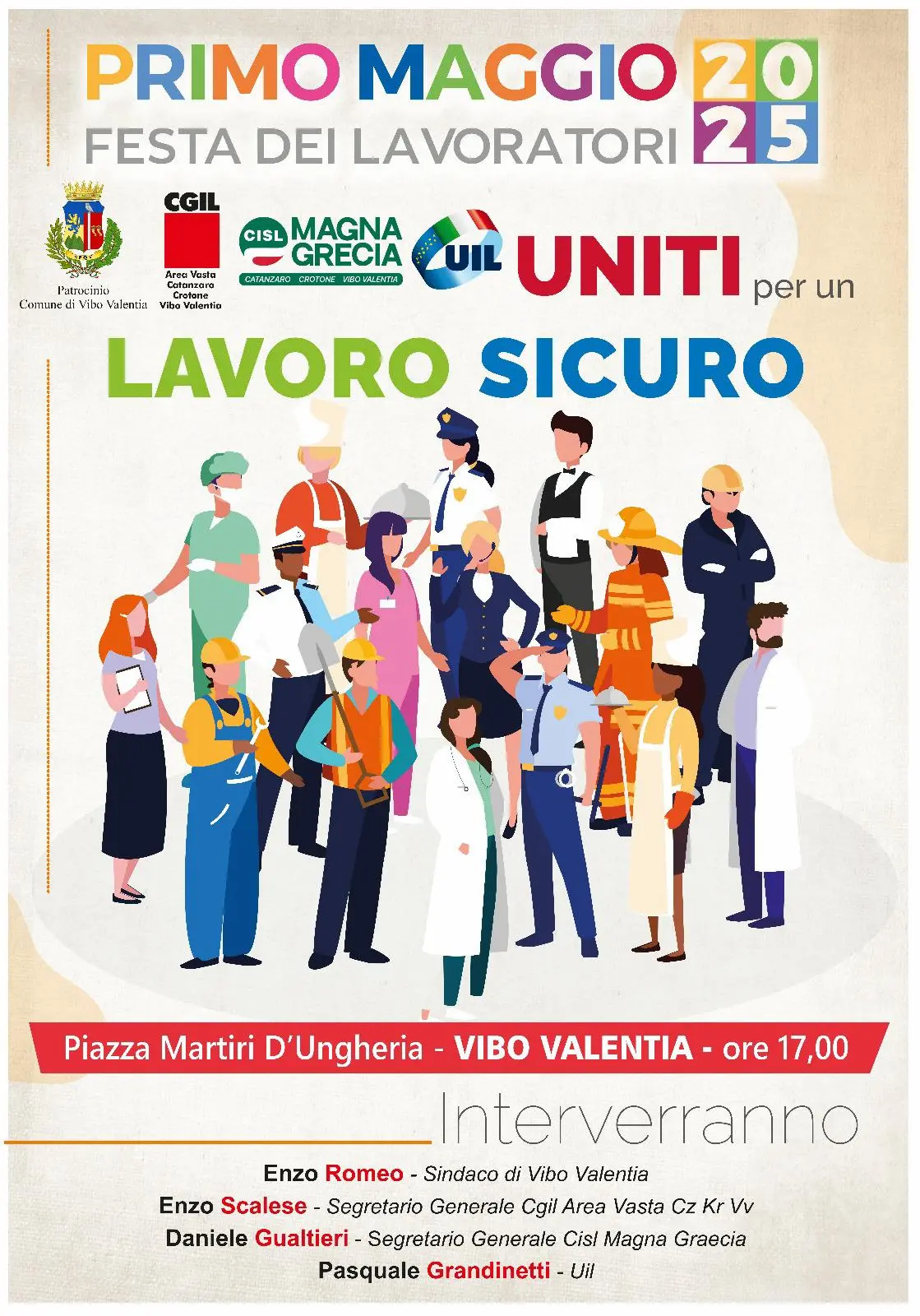 Domani in occasione della Festa dei Lavoratori, anche la Cgil sarà presente alla manifestazione promossa insieme agli altri due sindacati, Cisl e Uil, patrocinata dal Comune dal titolo “uniti per un lavoro sicuro” che si terrà a Vibo Valentia in Piazza Municipio a partire dalle ore 17:00.