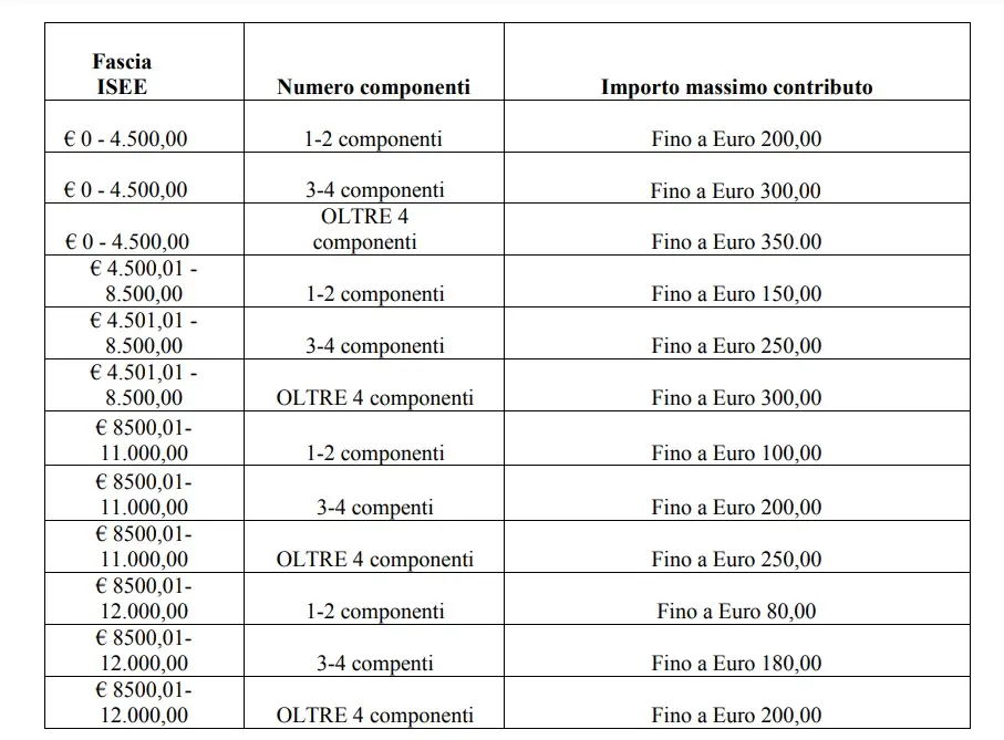 L’importo del contributo relativo alle utenze viene rapportato alle fasce di Isee e al numero dei componenti del nucleo familiare. La cifra massima è di 350 euro. La domanda di richiesta del contributo può essere presentata una sola volta dal nucleo familiare poiché l’agevolazione consiste in un contributo economico “una tantum” a rimborso parziale delle spese sostenute per le utenze gas, luce o quelle relative al servizio idrico relativamente alle fatture emesse dal primo gennaio 2022 al 25 febbraio 2023.