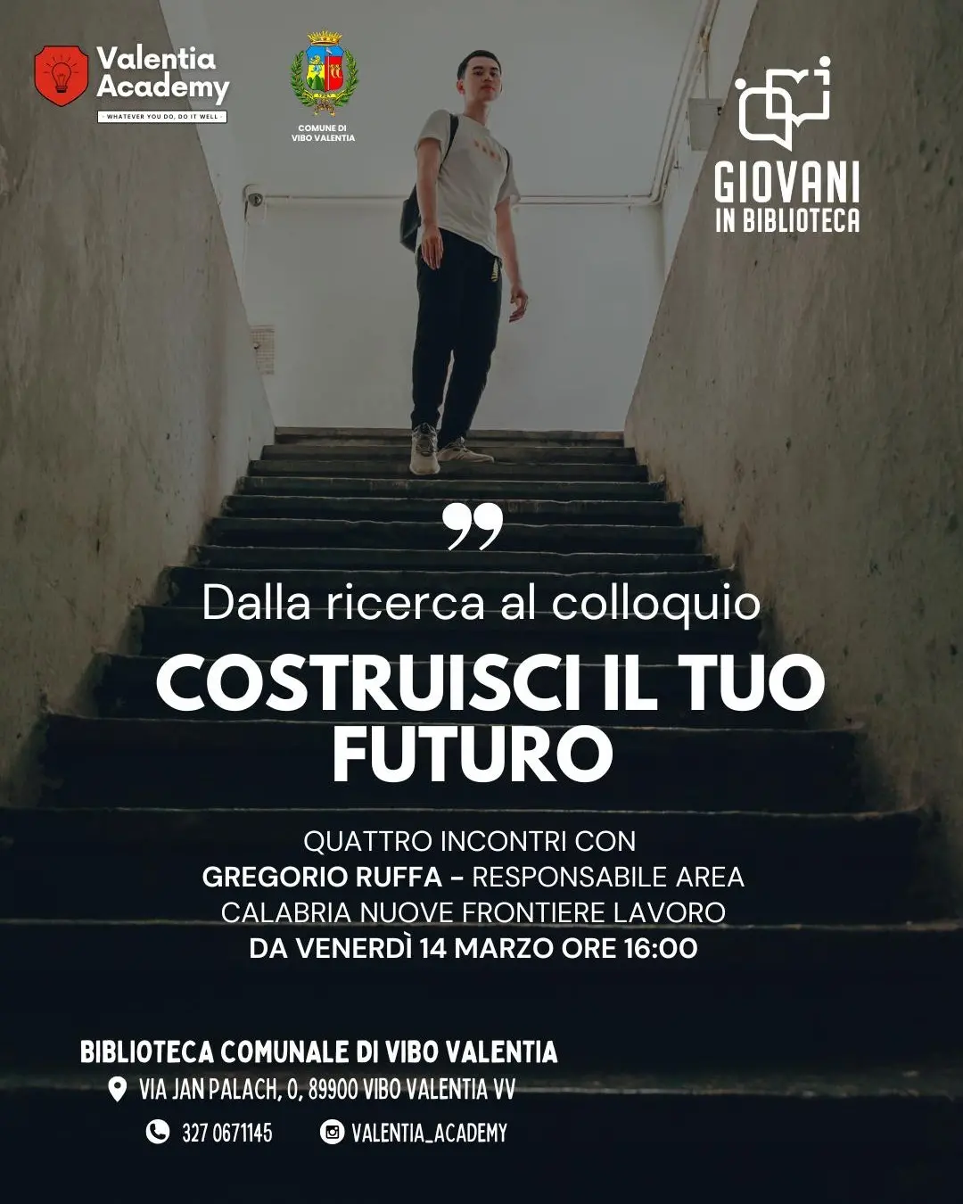 Aiutare i giovani nella ricerca di un’occupazione e nella costruzione del futuro nella propria terra. Partendo questo obiettivo, nell’ambito del progetto “Giovani in Biblioteca” nella biblioteca comunale di Vibo Valentia, sono in programma quattro incontri dedicati a come muovere i primi passi per la ricerca di un lavoro. Gli appuntamenti saranno a cura di Gregorio Ruffa – responsabile area Calabria nuove frontiere lavoro. Inizio il 14 marzo, ore 16.00.