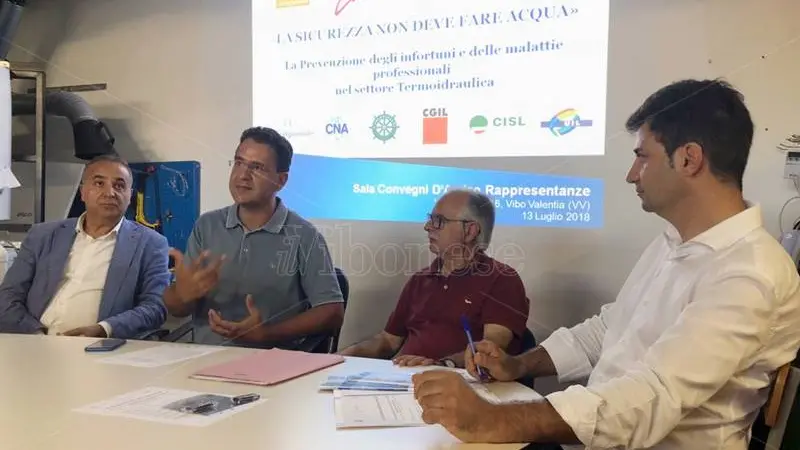 Dopo i saluti di Antonio Cugliari, presidente provinciale Cna di Vibo Valentia, e di Giorgio Capri, presidente dell’Unione provinciale installazione e impianti Cna di Vibo Valentia, è intervenuto Andrea Monteleone, direttore dell’Ente Bilaterale Artigianato Calabria. A seguire Simona Gaglioti, esperta in sicurezza, ha illustrato il progetto “la sicurezza non deve fare acqua”. E’ stato poi il segretario generale della Cgil Catanzaro Raffaele Mammoliti, referente organismo Paritetico Artigianato, a soffermarsi sul ruolo delle parti sociali a tutela di imprese e lavoratori: «oggi con l’Inail di Vibo portiamo a conclusione un progetto di proficua collaborazione che è stata intrapresa su un settore specifico che è quello degli idraulici – ha affermato Mammolliti – sostanzialmente attraverso i nostri delegati contattiamo le imprese al fine di fornire loro una serie di adeguate informazioni in modo tale da rispettare e da osservare il quadro normativo previsto. Questo per evitare il verificarsi di incidenti sul lavoro, di infortuni che spesso sono anche mortali e che hanno un costo sociale elevatissimo. Quindi il nostro compito – ha concluso il segretario della Cgil Catanzaro – è quello di mettere insieme queste esperienze e l’utilizzo di questi strumenti, e soprattuto sollecitare gli enti pubblici responsabili e competenti ad effettuare una giusta coordinazione tra di loro in modo tale che si possano evitare il grande numero di infortuni che pure nel settore dell’artigianato purtroppo si verificano».