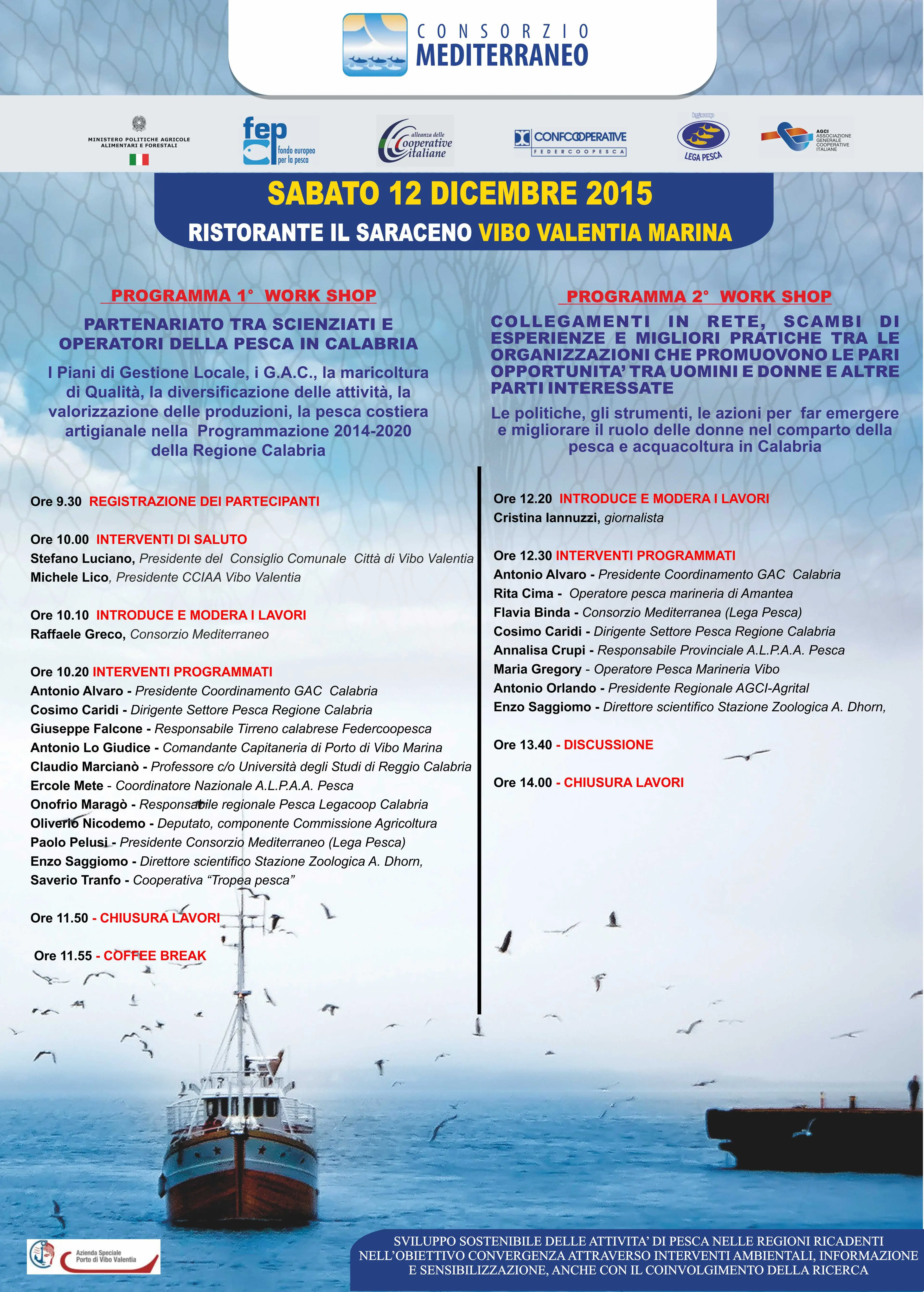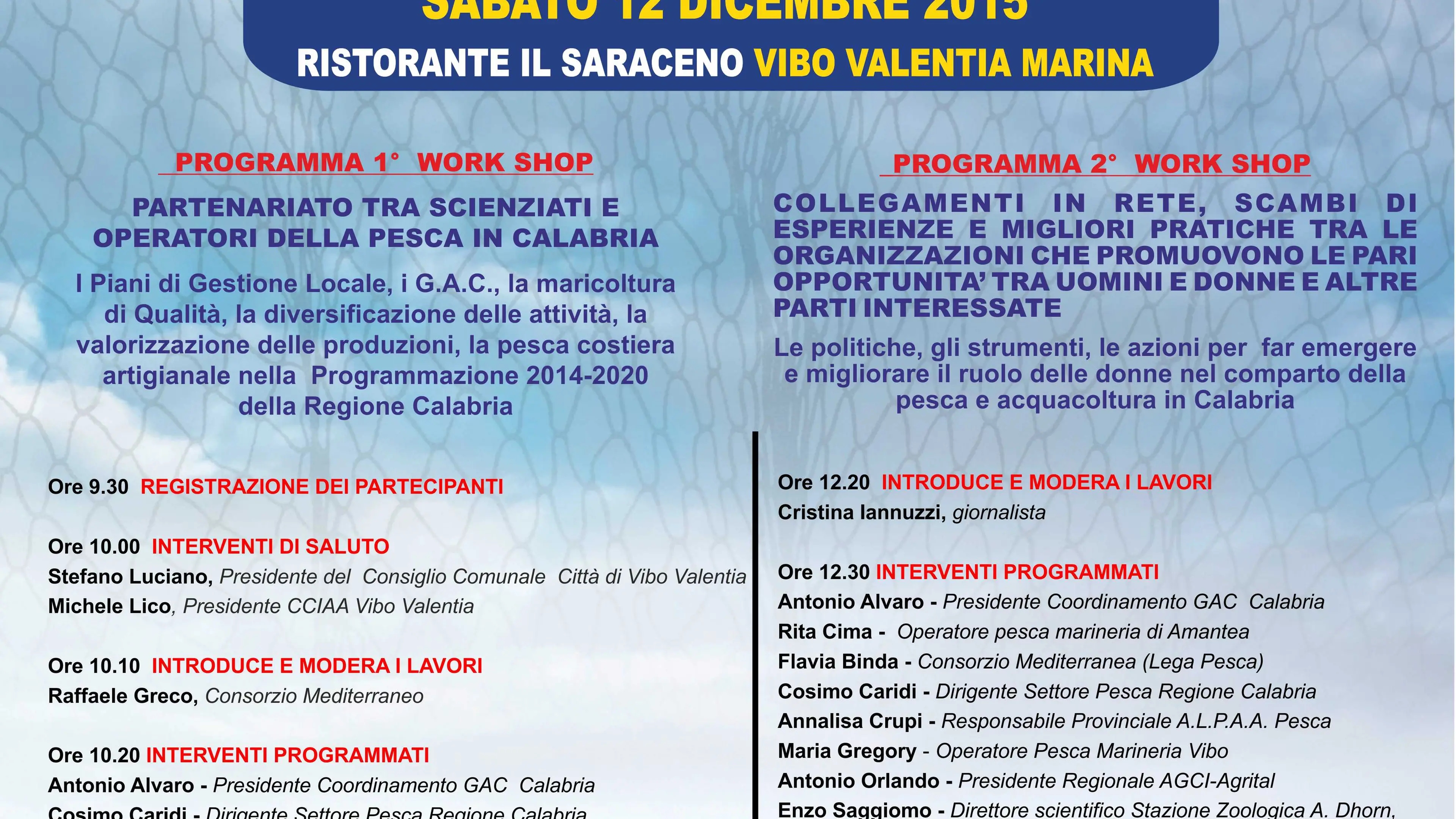Per il Tirreno, le due sessioni seminariali si svolgeranno a Vibo Marina sabato 12 dicembre, con inizio alle ore 9.30, presso il Ristorante “Il Saraceno”.