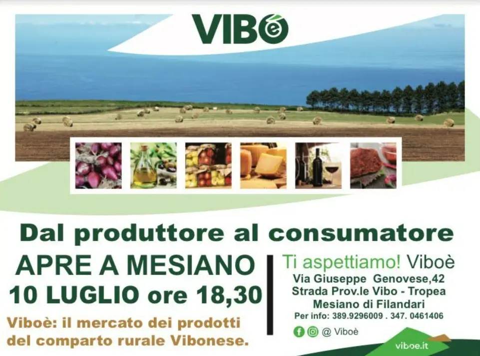 Dal produttore al consumatore. Apre a Mesiano il mercato dei prodotti del comparto rurale vibonese. L’inaugurazione si terrà il 10 luglio alle ore 18.30. Tra gli altri, parteciperanno: l’assessore all’Agricoltura della Regione Calabria, Gianluca Gallo, il consigliere regionale Michele Comito, il direttore del Laboratorio di sostenibilità ed economia circolare, dell’Unisg di Pollenzo-Bra, Silvio Greco, il sindaco di Filandari Rita Fuduli, il presidente del Distretto del territorio rurale vibonese Pino Grillo, il delegato del Wwf Angelo Calzone, il soggetto capofila del partenariato Caterina Bagnato e il presidente del Cogal Monte Poro-Serre Vibonesi, Lello Greco. Il mercato, che ha come obiettivo principale quello di accorciare la filiera per tutti i prodotti tipici del territorio rurale vibonese, con particolare riferimento alle eccellenze, è stato realizzato in un’idonea struttura, individuata a Filandari di Mesiano nel cuore dell’area rurale del Poro, lungo la strada provinciale che collega il centro abitato di Mesiano a Spilinga, Tropea-Capo Vaticano. [Continua in basso]
