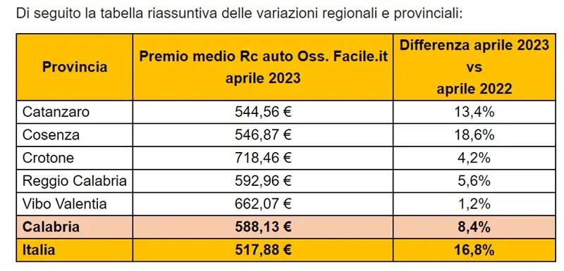 Ancora brutte notizie per gli automobilisti vibonesi; il rincaro dell’Rc Auto iniziato quasi un anno e mezzo fa non stenta a rallentare tanto è vero che, come evidenziato dall’Osservatorio di Facile.it, in appena 12 mesi il premio medio pagato in provincia di Vibo Valentia per assicurare un veicolo a quattro ruote è cresciuto dell’1,2% arrivando, ad aprile 2023, a 662,07 euro. L’incremento è il più basso registrato nella regione. L’aumento delle tariffe medie rilevato nell’ultimo anno è stato registrato, seppur in misura differente, in tutte le province calabresi: a segnare l’incremento più consistente è Cosenza (+18,6%, 546,87 euro), seguita da Catanzaro (+13,4%, 544,56 euro). Rincari inferiori alla media regionale per Reggio Calabria (+5,6%, 592,96 euro) e Crotone (+4,2%, 718,46 euro). Chiude la classifica regionale la provincia di Vibo Valentia (+1,2%, 662,07 euro). In valori assoluti, sempre ad aprile 2023, Crotone è risultata essere la provincia più cara della regione, Catanzaro la più economica.